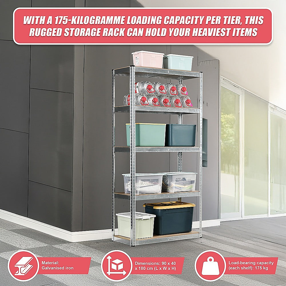 With five tiers of vertical storage space, this shelving can free up tons of floor space in your home or workplace. Crafted from galvanised iron and heavy-duty MDF board, this shelving is built to last for years to come. Its sturdy construction will hold up under everyday use and it's corrosion-resistant, too, so you can use it in your laundry as well. Its non-slip rubber feet keep it in place and protect your floor from scratches and scuffs. It's easy to assemble and comes with instructions, so even if you're a newbie to the DIY world, it'll be a breeze to install. So don't put off your spring organisation any longer. Order your shelving rack today!