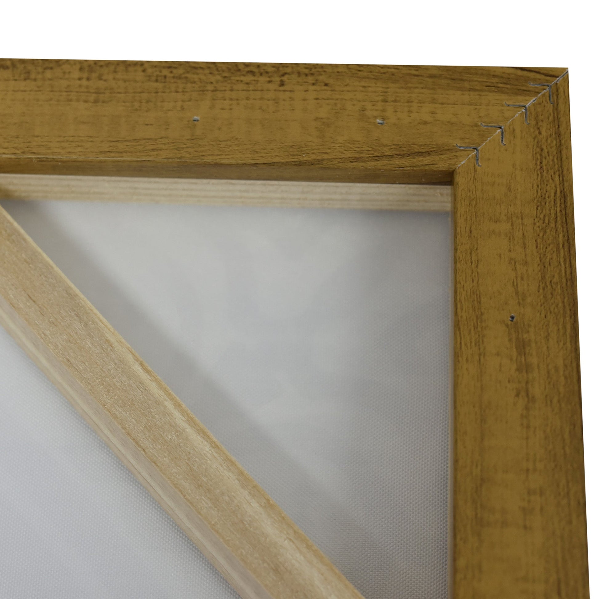 Stretched and gallery wrapped around a wooden stretcher and finished with a floating frame. There is a gap between the frame and print, which creates the floating effect and literally makes the canvas print stand out even more.