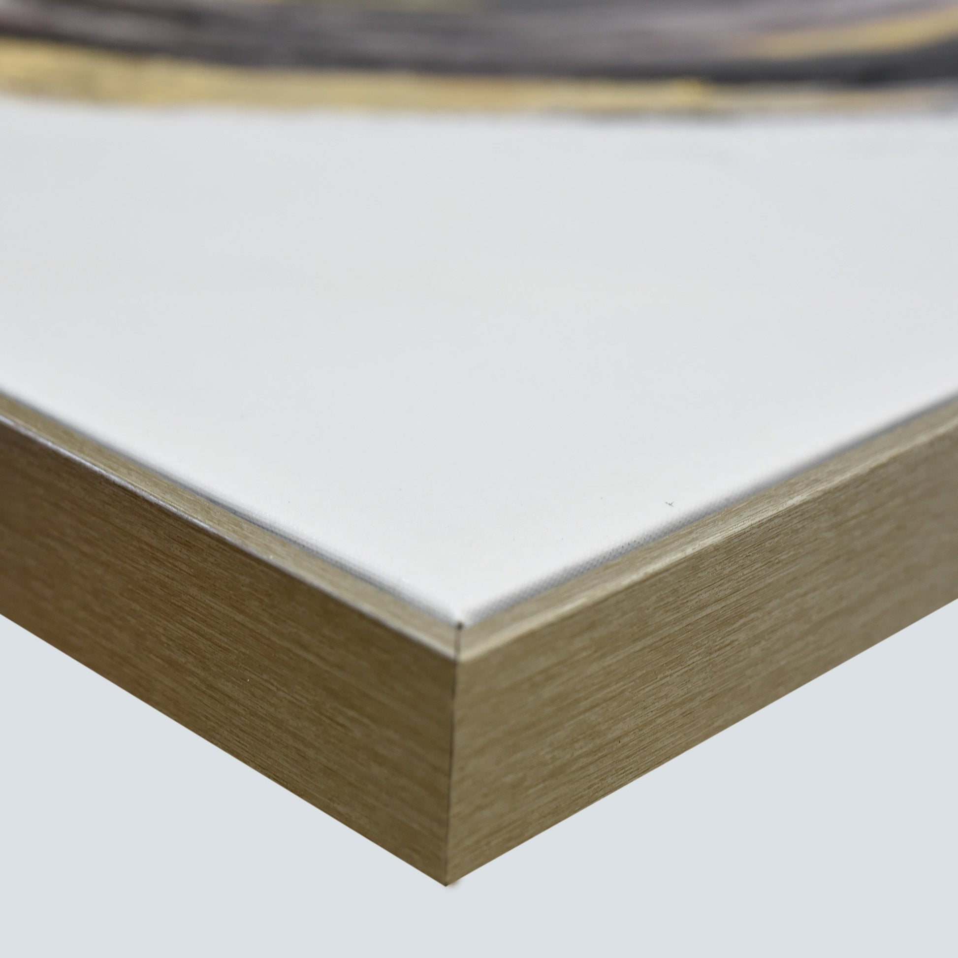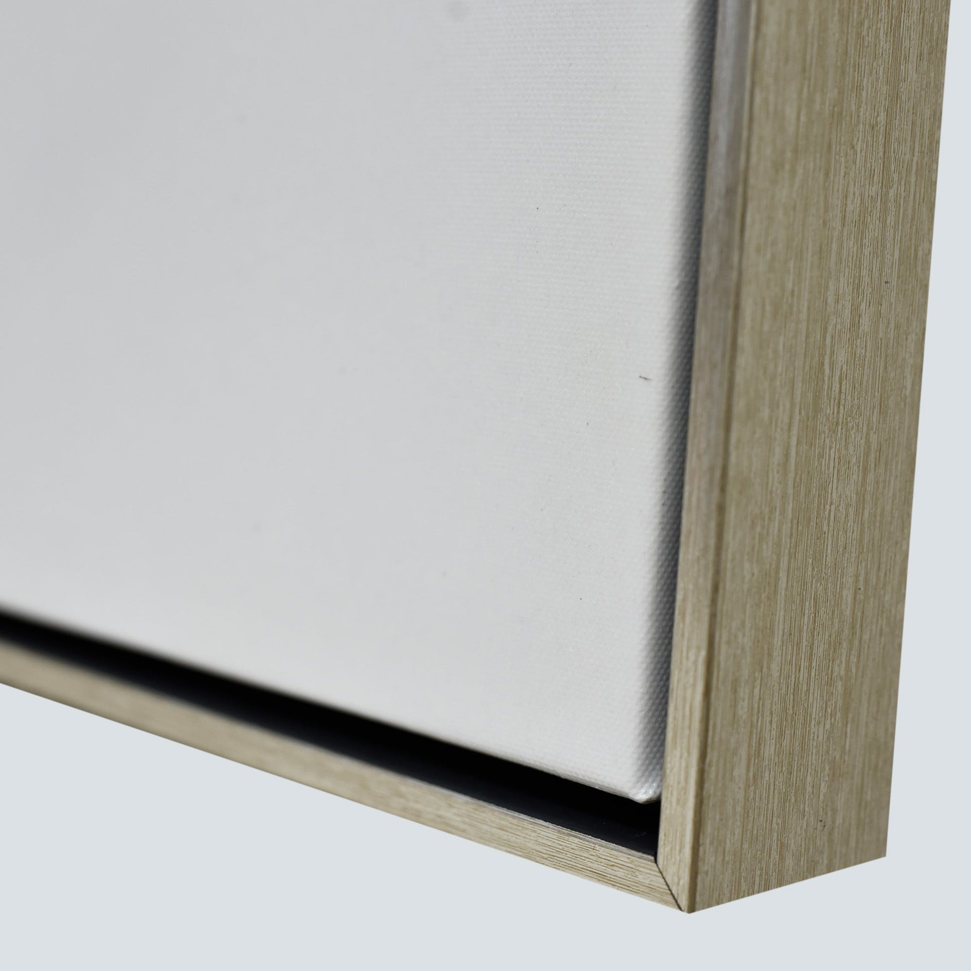 Stretched and gallery wrapped around a wooden stretcher and finished with a floating frame. There is a gap between the frame and print, which creates the floating effect and literally makes the canvas print stand out even more.