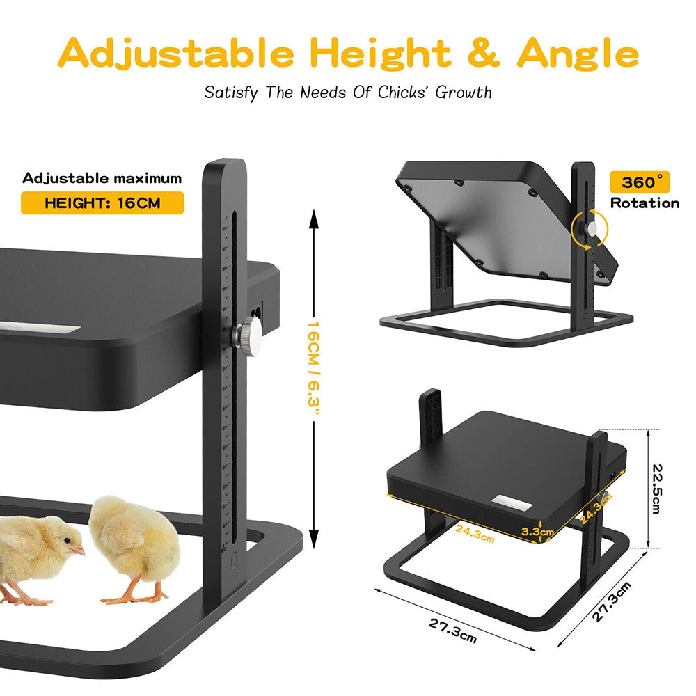 Ideal Size For Your Flock 27X27CM chicken brooder heater plate fits up to 10 to 20 newly hatched chicks, ducklings, goslings, and other domestic fowl; Adjust the height to make sure direct contact with the bottom of the chick brooder plate.