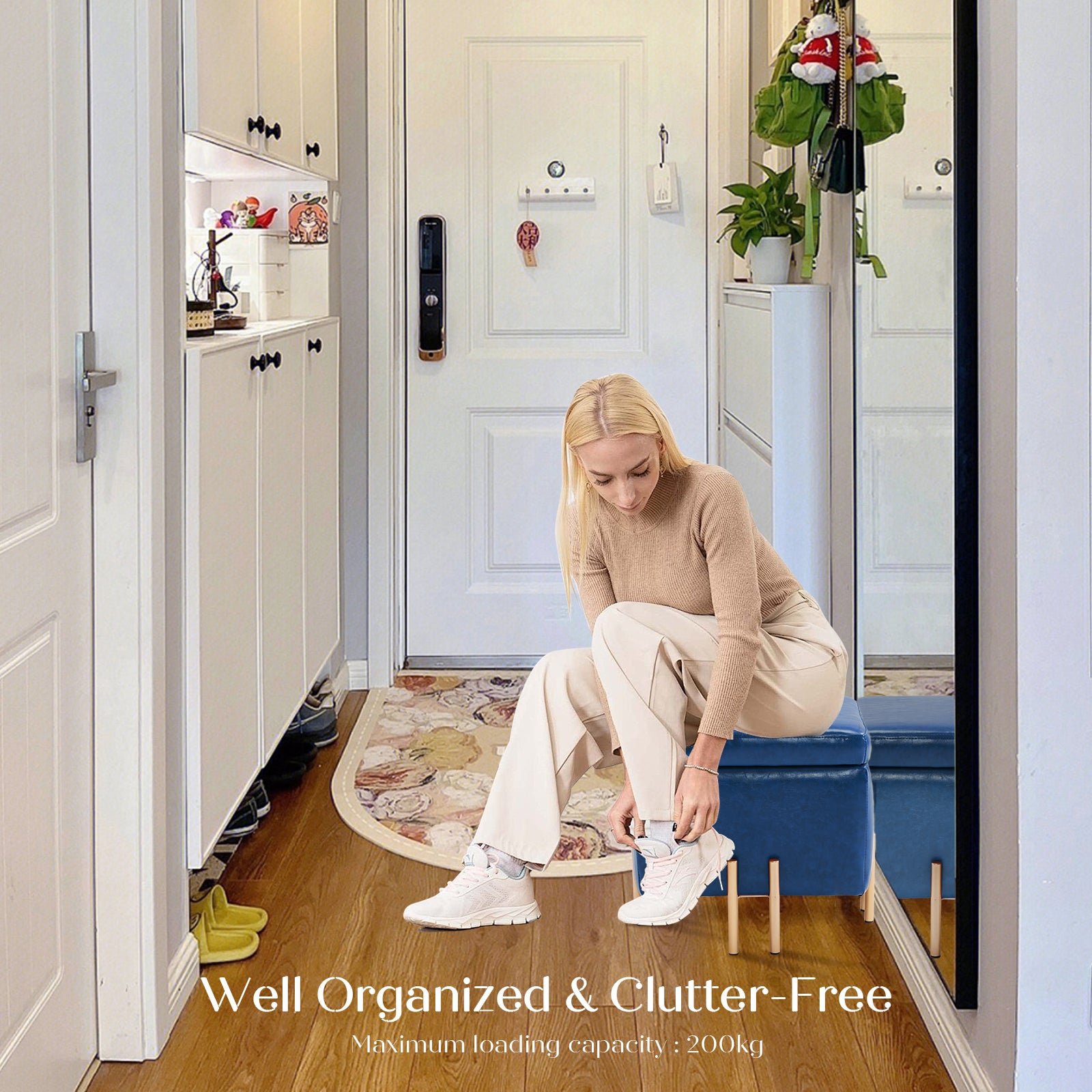 2X Storage Ottoman Foot Stool Cube Tuffet Seat 45cm PU Leather BLUE