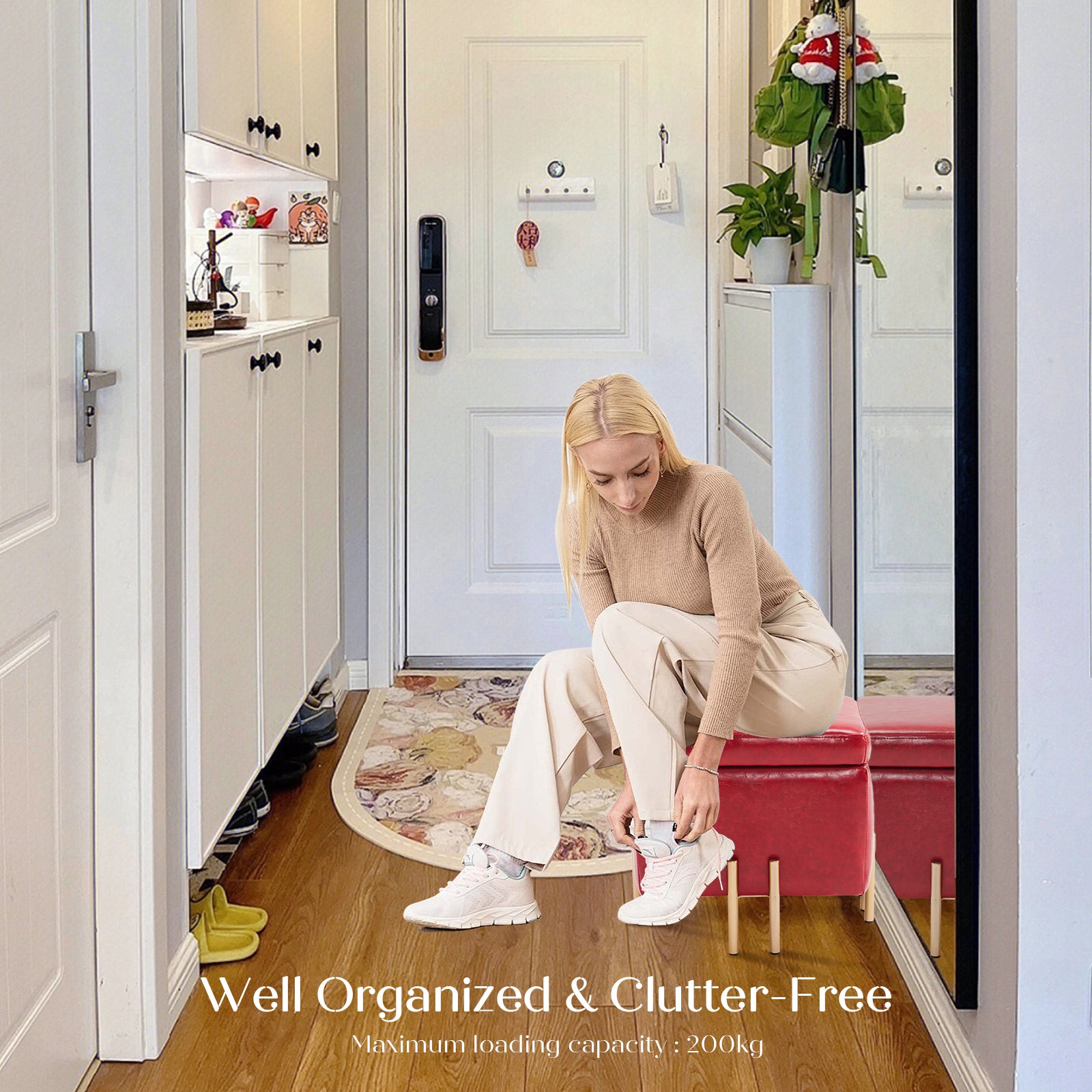 2X Storage Ottoman Foot Stool Cube Tuffet Seat 45cm PU Leather RED