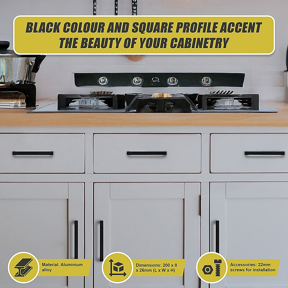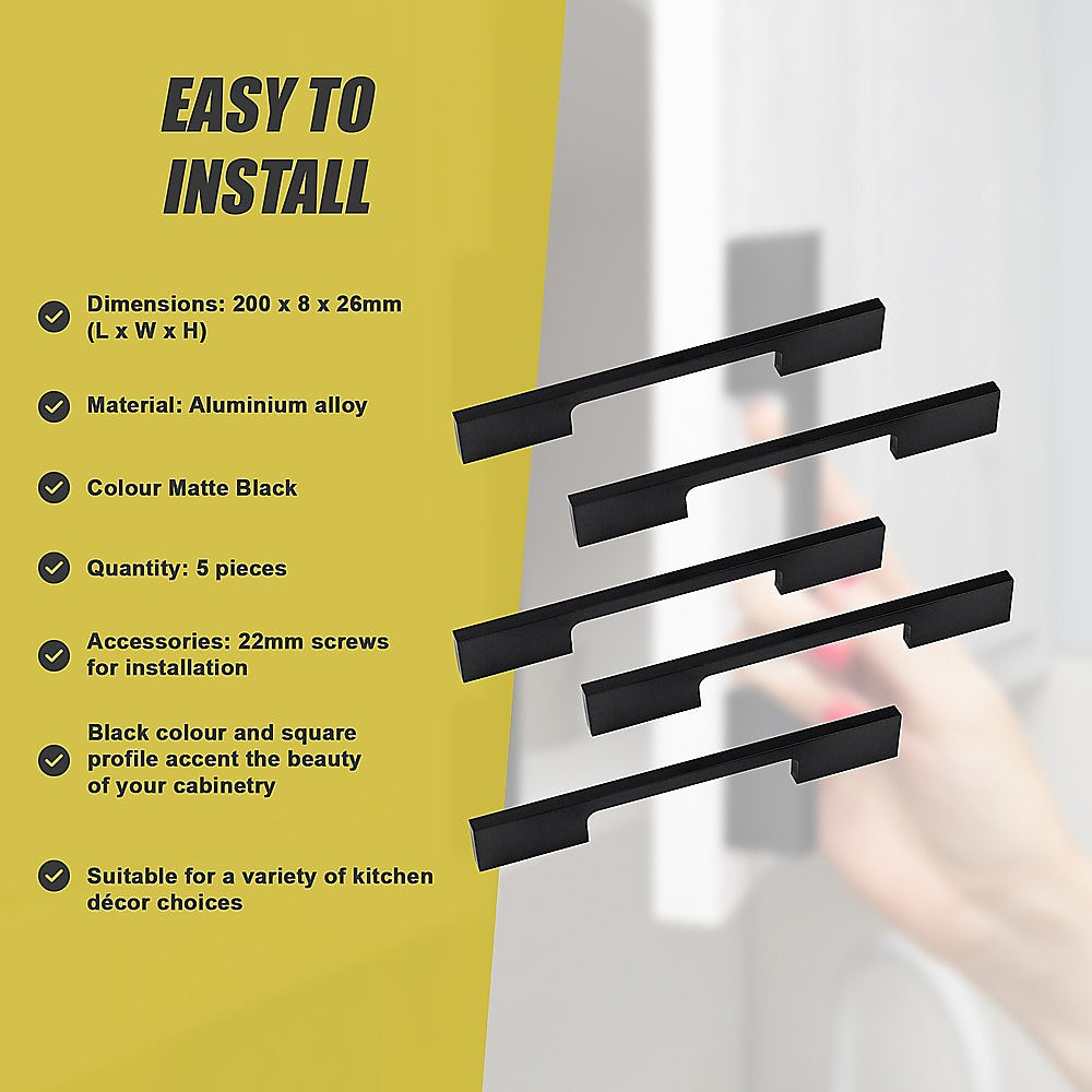 5 x 128mm Kitchen Handle Cabinet Cupboard Door Drawer Handles square Black furniture pulls