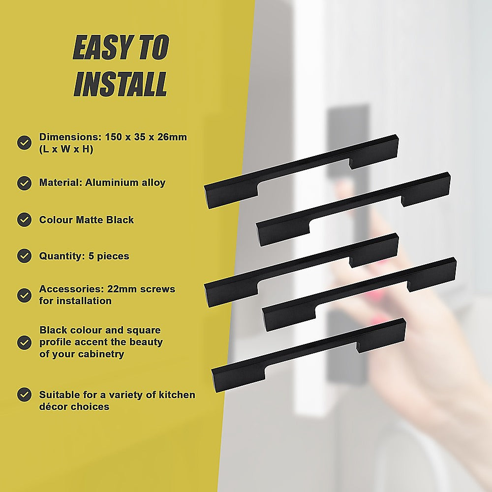 5 x 96mm Kitchen Handle Cabinet Cupboard Door Drawer Handles square Black furniture pulls