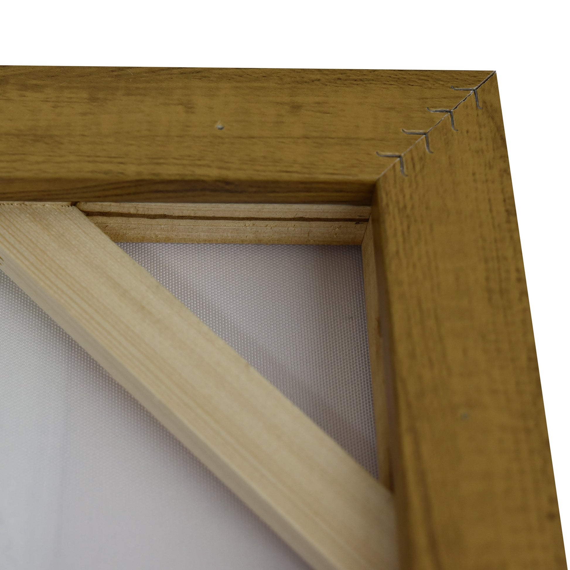 Stretched and gallery wrapped around a wooden stretcher and finished with a floating frame. There is a gap between the frame and print, which creates the floating effect and literally makes the canvas print stand out even more.