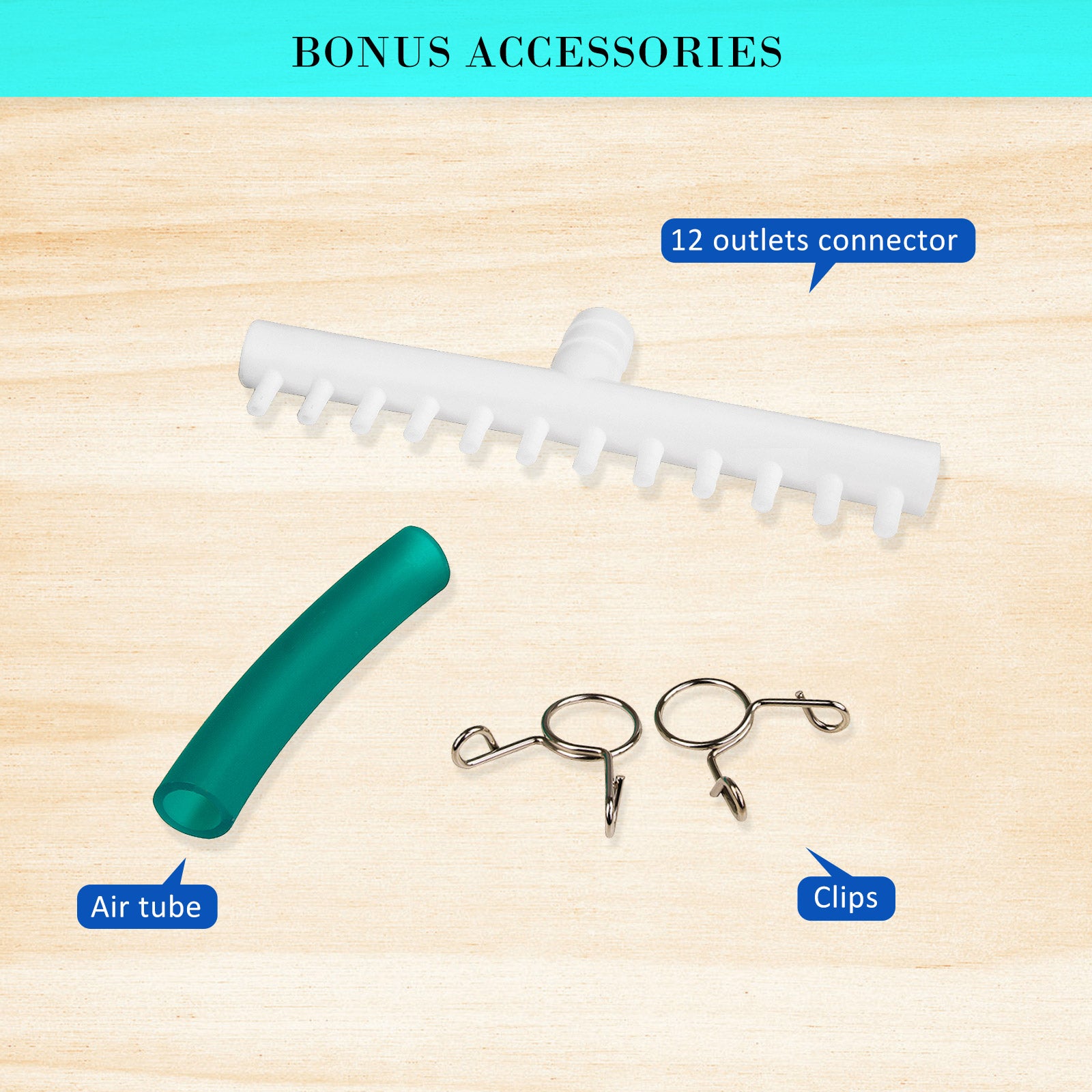 - 12 outlets in order to spread the oxygen evenly in your tank/pond