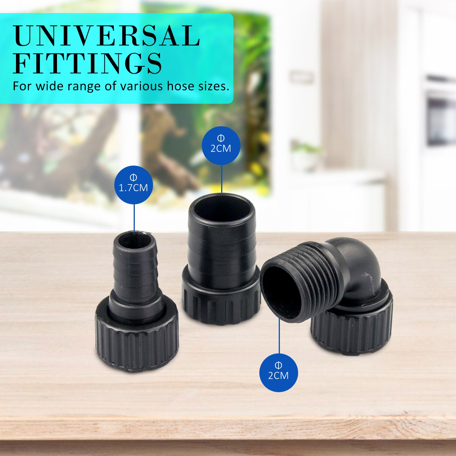 - Flow rate is adjustable by changing the outlet connectors in order to better suit your set up