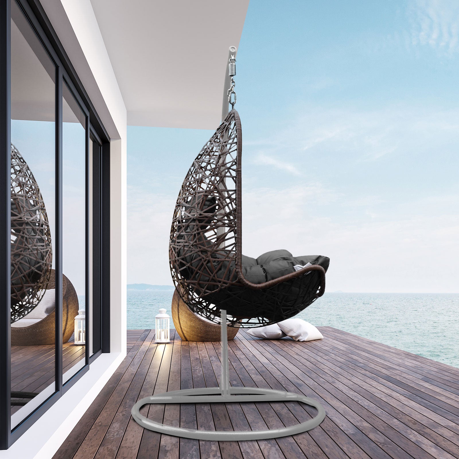 The frame is built from industrial-strength steel with a high tensile spring. The framework provides a stable platform while still allowing that lighter than air floating sensation you get from suspended furniture.