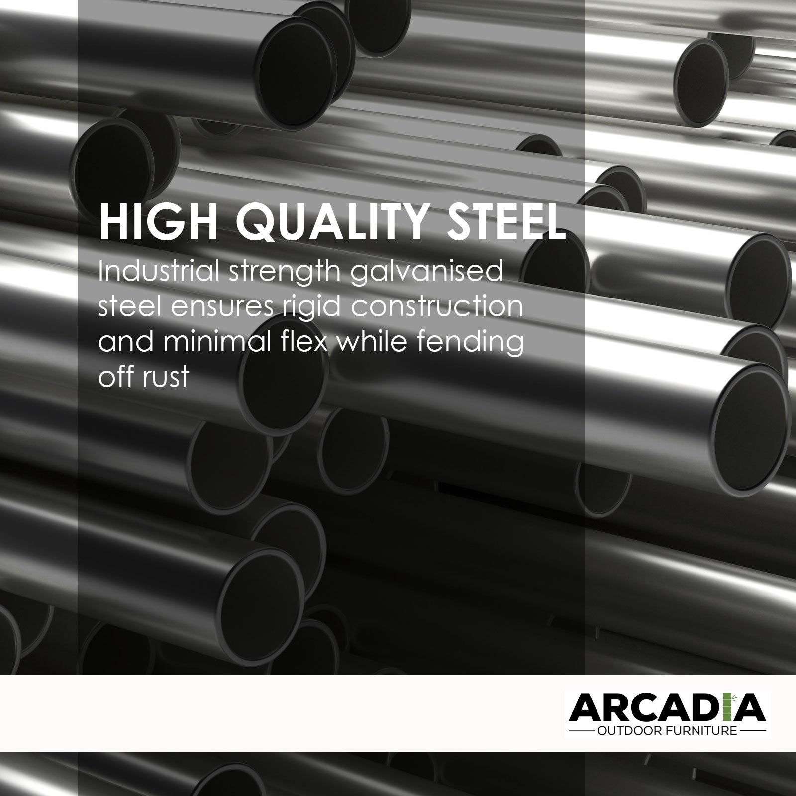 Industrial strength galvanized steel frame for maximum rigidity and rust prevention
