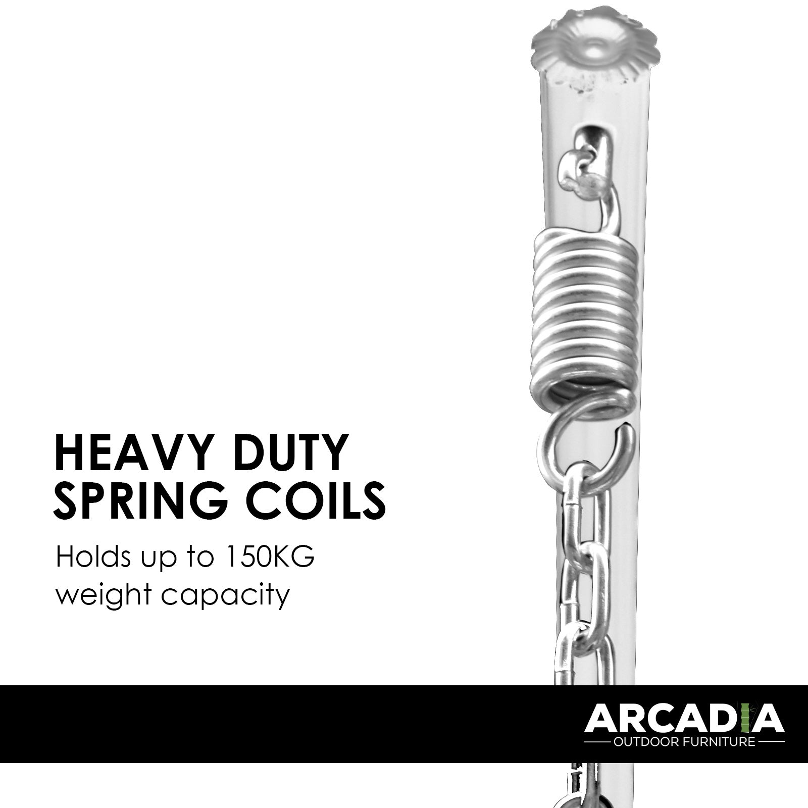 This rocking egg chair is built from industrial-strength steel with a high tensile spring. The framework provides a stable platform while still allowing that lighter than air floating sensation you get from suspended furniture.