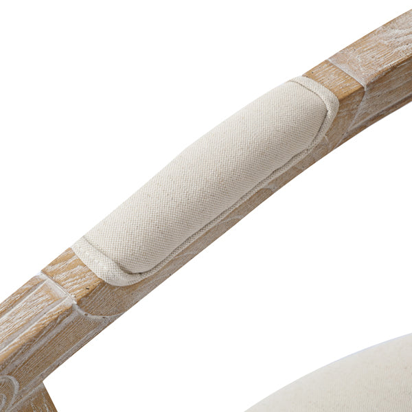 Arm Chair Linen Fabric Beige Oak Wood White Washed Finish