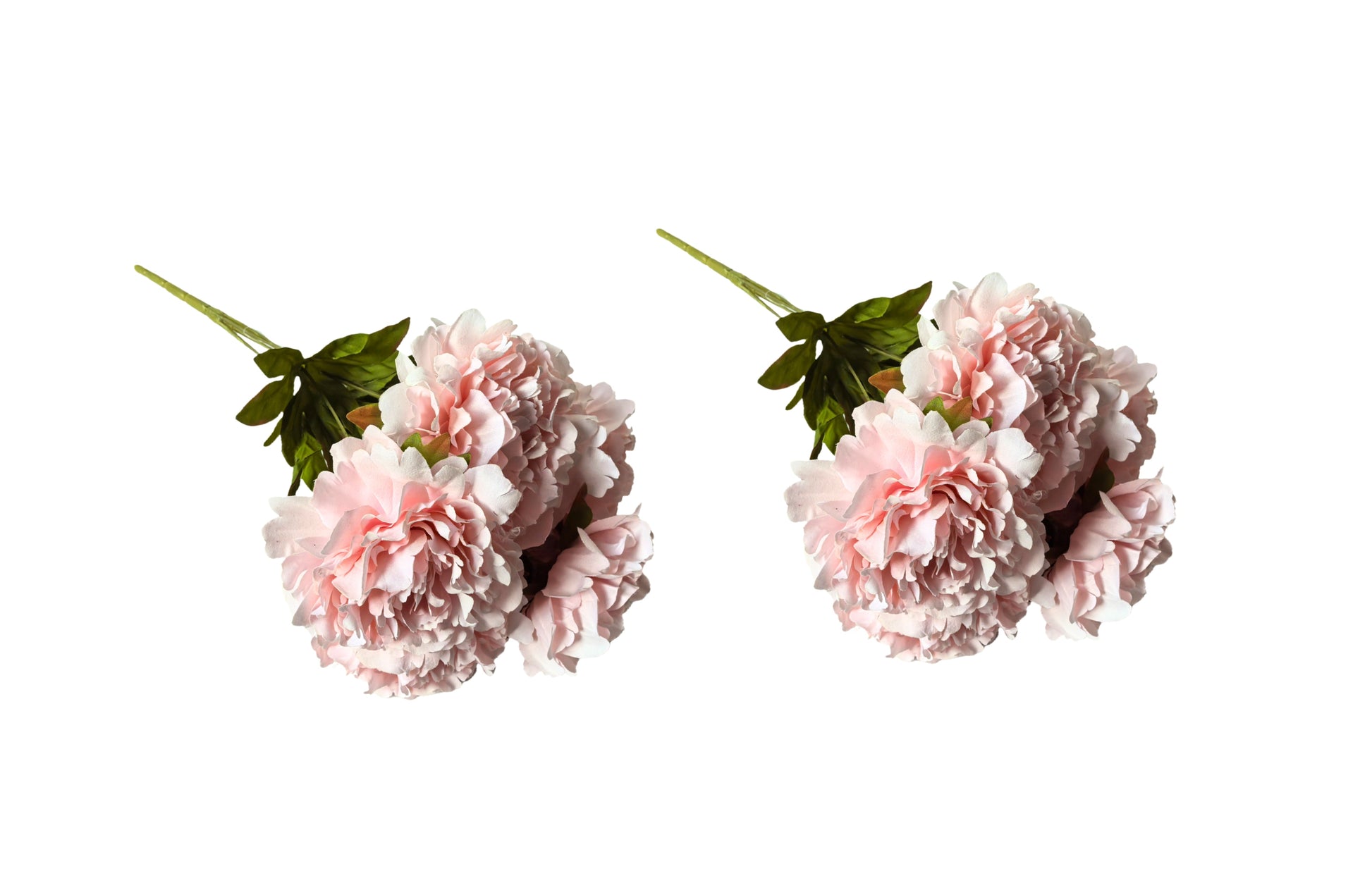 Artificial Bloomed Peony Bunch – Set of 2 Bunches – 45cm with 5 Flowers Each - Soft Pink