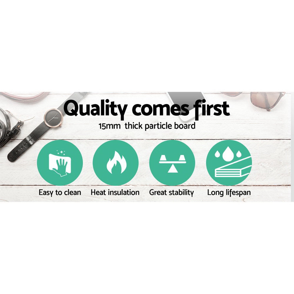 With its eclectic style, our Artiss 4-drawer Tallboy is visually stylish and totally practical. The look is unique and suits any modern or rustic decor perfectly. The four drawers are spacious and installed with metal runners for smooth movement and metal handles for reliability. Overall, the tallboy is built strong and sturdy with an enhanced weight capacity of up to 50kg. It also comes with an elevated design that comprises metal tube legs with adjustable foot pads to balance it on uneven floors if needed.