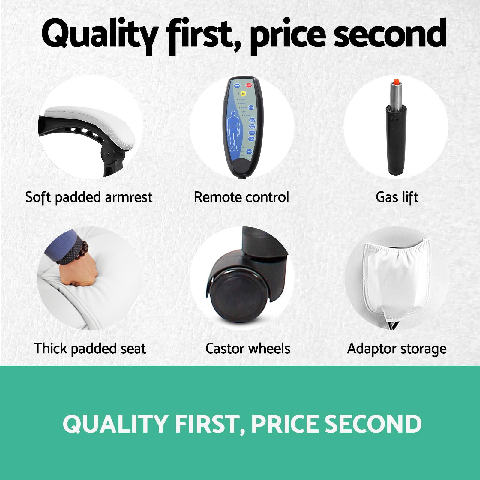 * Eight massage points at 4 levels - Upper/lower back, hips, and thighs
