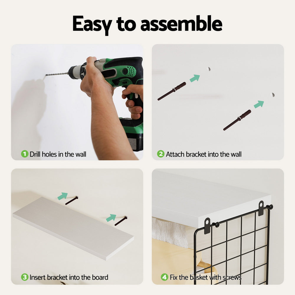 Enhance your home with the Artiss Set of 3 Floating Wall Shelves, made from premium solid paulownia wood for durability and style. This set includes three shelves and a metal storage basket, perfect for organising and displaying items in your bathroom, kitchen, living room, or bedroom. The space-saving design frees up floor space, while the easy assembly and maintenance make it ideal for any household. Add functional elegance to your interior with these versatile shelves.