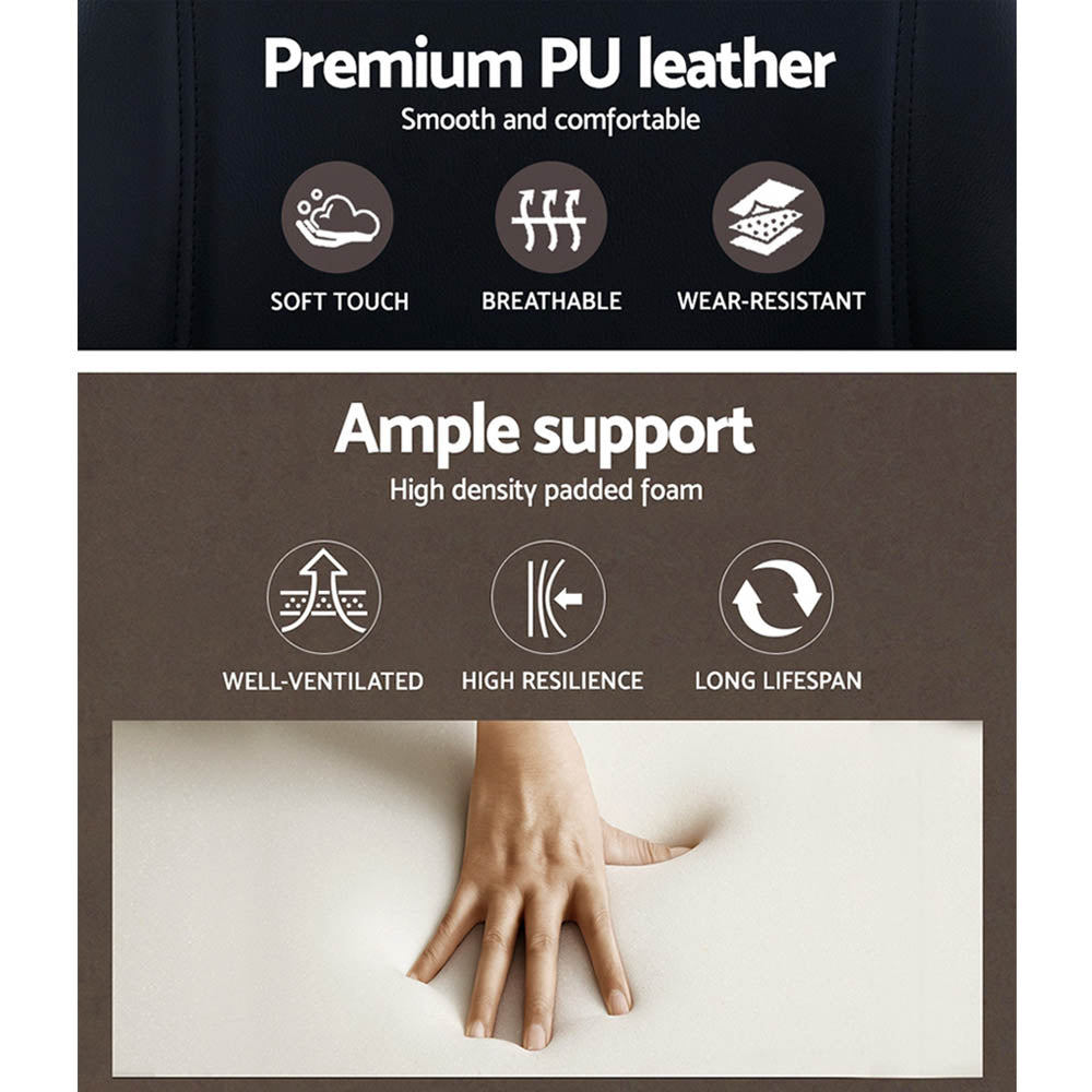 Wood, leather and chrome in total harmony. Such is the eclectic design of our Artiss Ashby Office Chair that stands out from other mundane offerings. The seat is meticulously crafted with a contoured wooden frame, cushioned seat, back and arm support and premium PU leather upholstery. You have full mobility with this office chair as the seat rotates 360° to face any direction with ease and the corrosion-resistant chrome base has five smooth castor wheels attached. It also comes with both height and tilt adjustment to allow you to be seated at your most comfortable position and posture. The gas lift is TUV-certified for durability and reliability. So bring a touch of contemporary living to your home or office interior with our office chair.