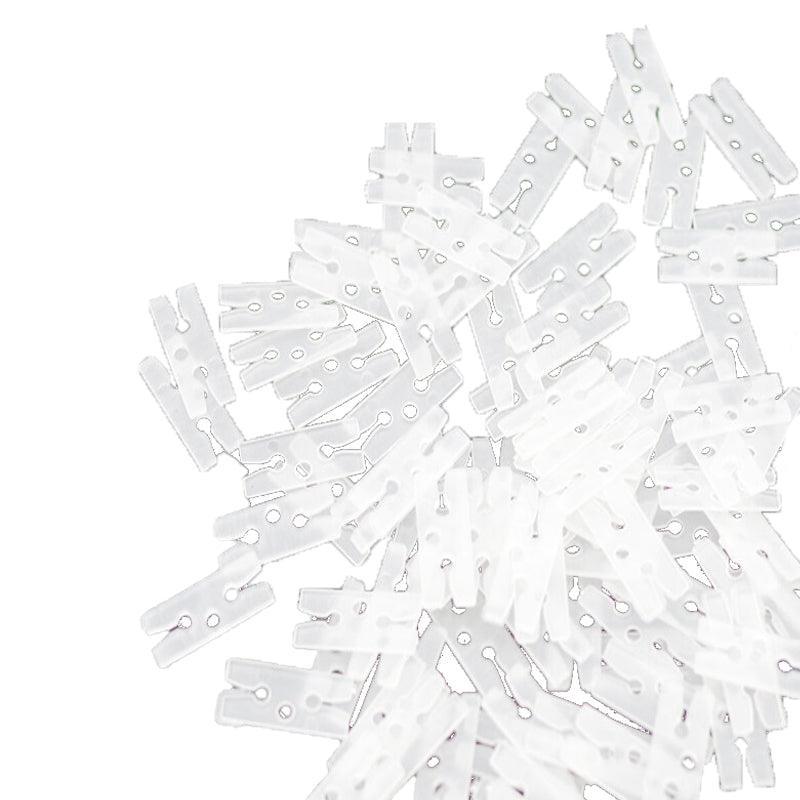 These balloon clips are essential for any party or event that includes helium or air-filled balloons. Easy to use and secure, simply slide the knot of your balloon into the clip and you're done! These clips are perfect for decorating weddings, birthday parties, and other special occasions. The H/V shape helps to keep balloons upright and in place, making your decorations look more professional and polished. Plus, they save you time and effort compared to tying balloons individually. Don't forget to add these balloon clips to your party supplies list!