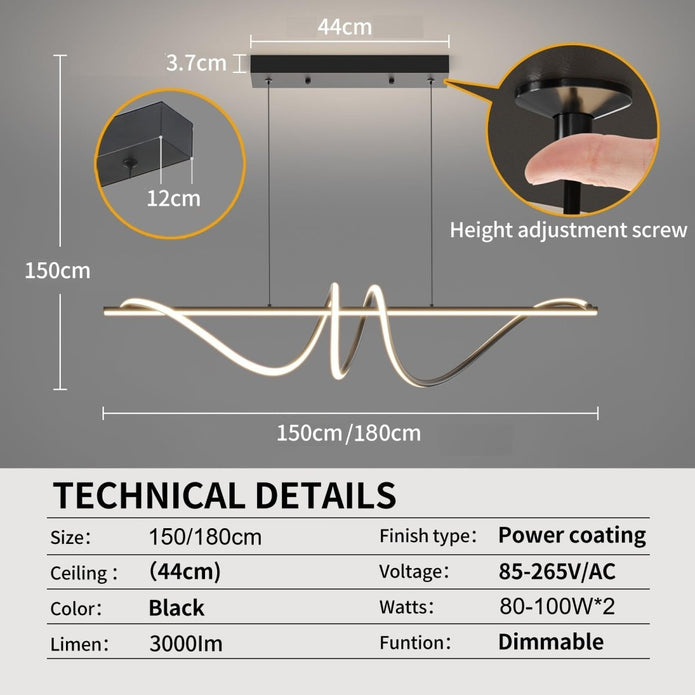 BAMDECOR A202 Modern LED Linear Pendant Lights with Dimmable LED (160cm/180cm-Black) 1.5 Meters