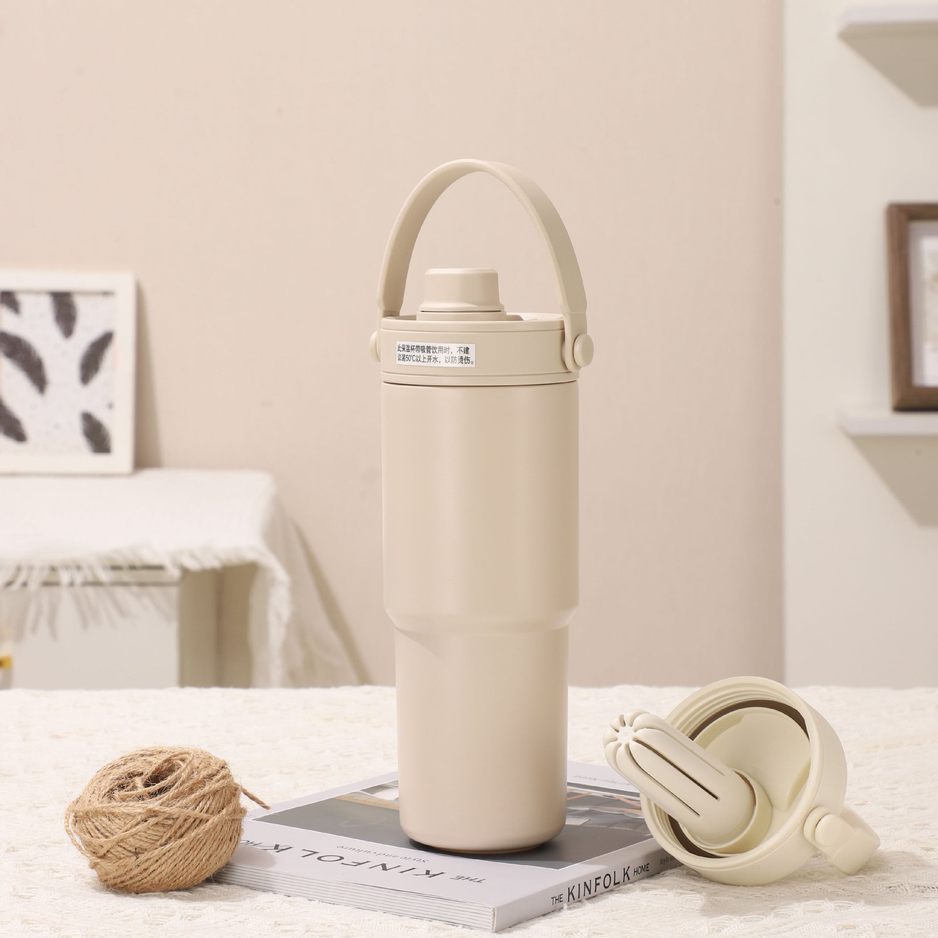 Beige 316 Stainless Steel Insulated 730ml Tumbler with Straw - Dual-Drink Ceramic Liner Portable Car Cup