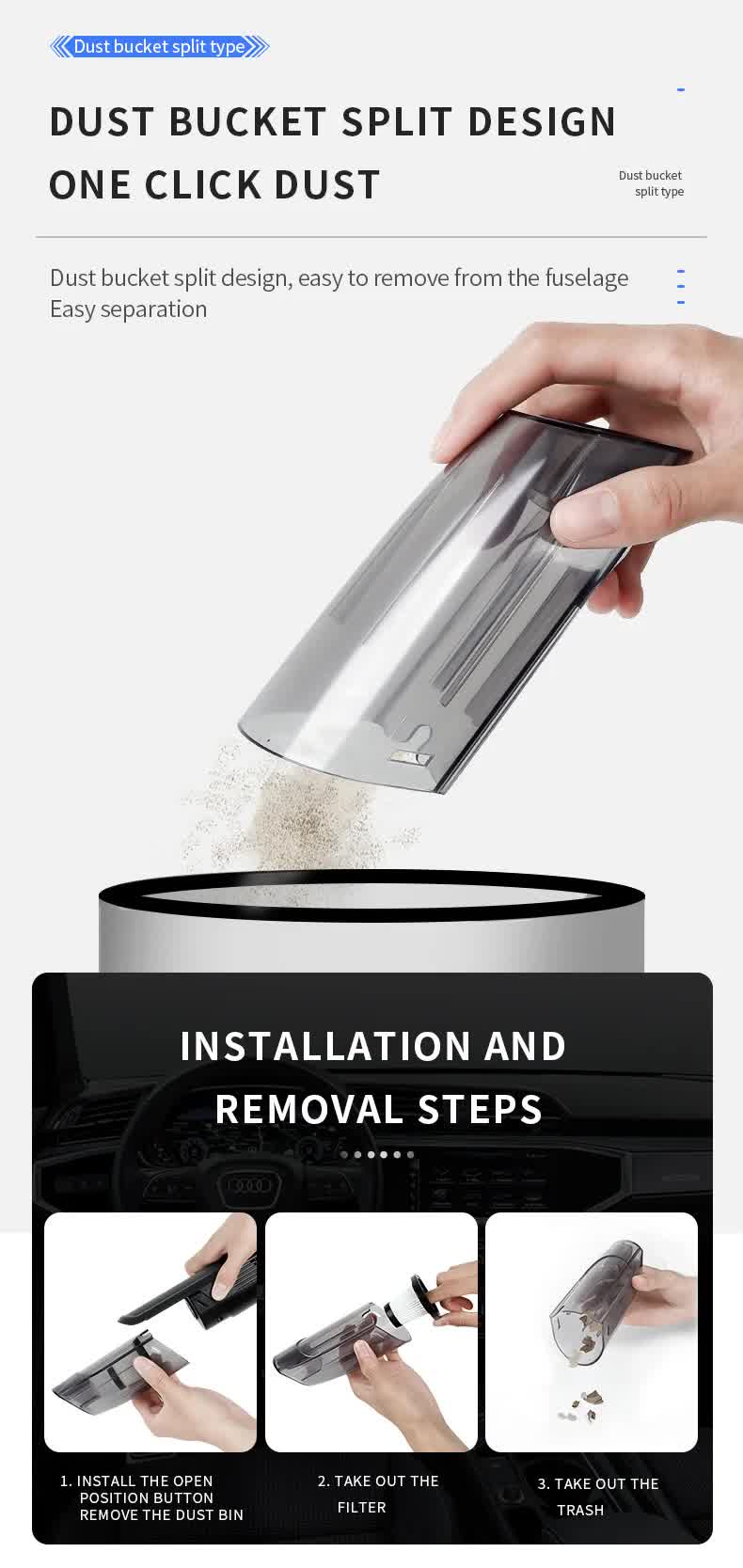 Experience powerful and efficient cleaning with this versatile handheld car vacuum cleaner. Perfect for both dry and wet cleaning, this device is lightweight, portable, and designed for convenience. Whether for home, office, or car use, this vacuum cleaner is your go-to solution for a clean and hygienic environment.
