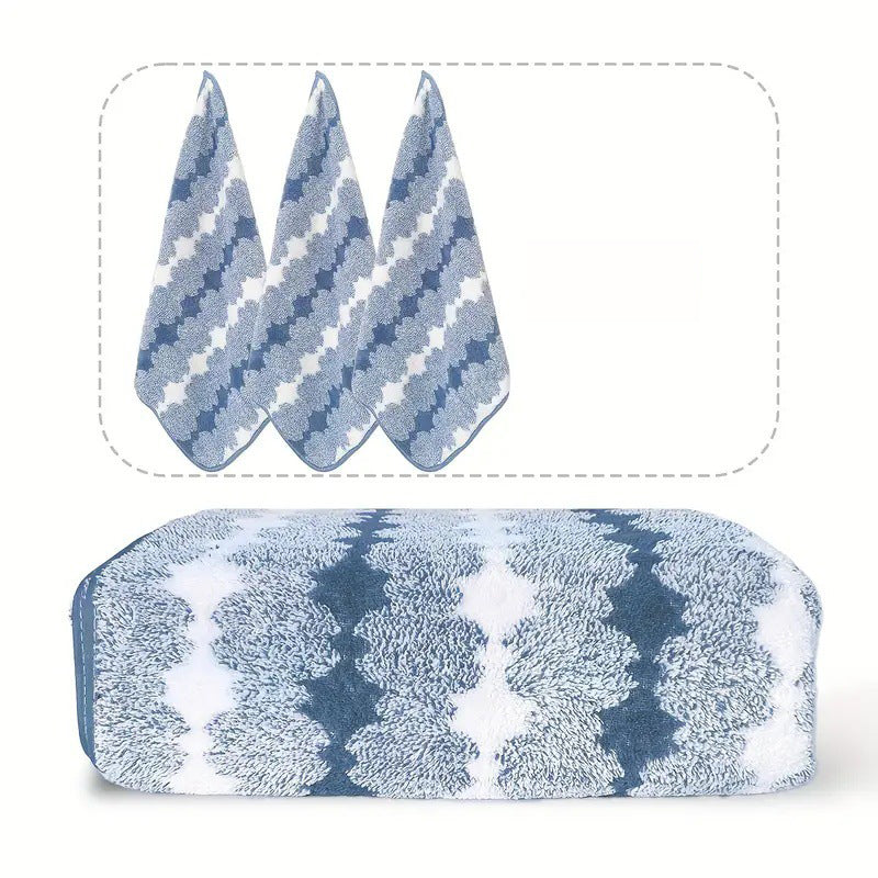 Blue Premium Coral Fleece Towel Set – 1 Bath Towel (88x170cm) + 3 Hand Towels (35x35cm) – Soft, Absorbent, and Quick-Drying