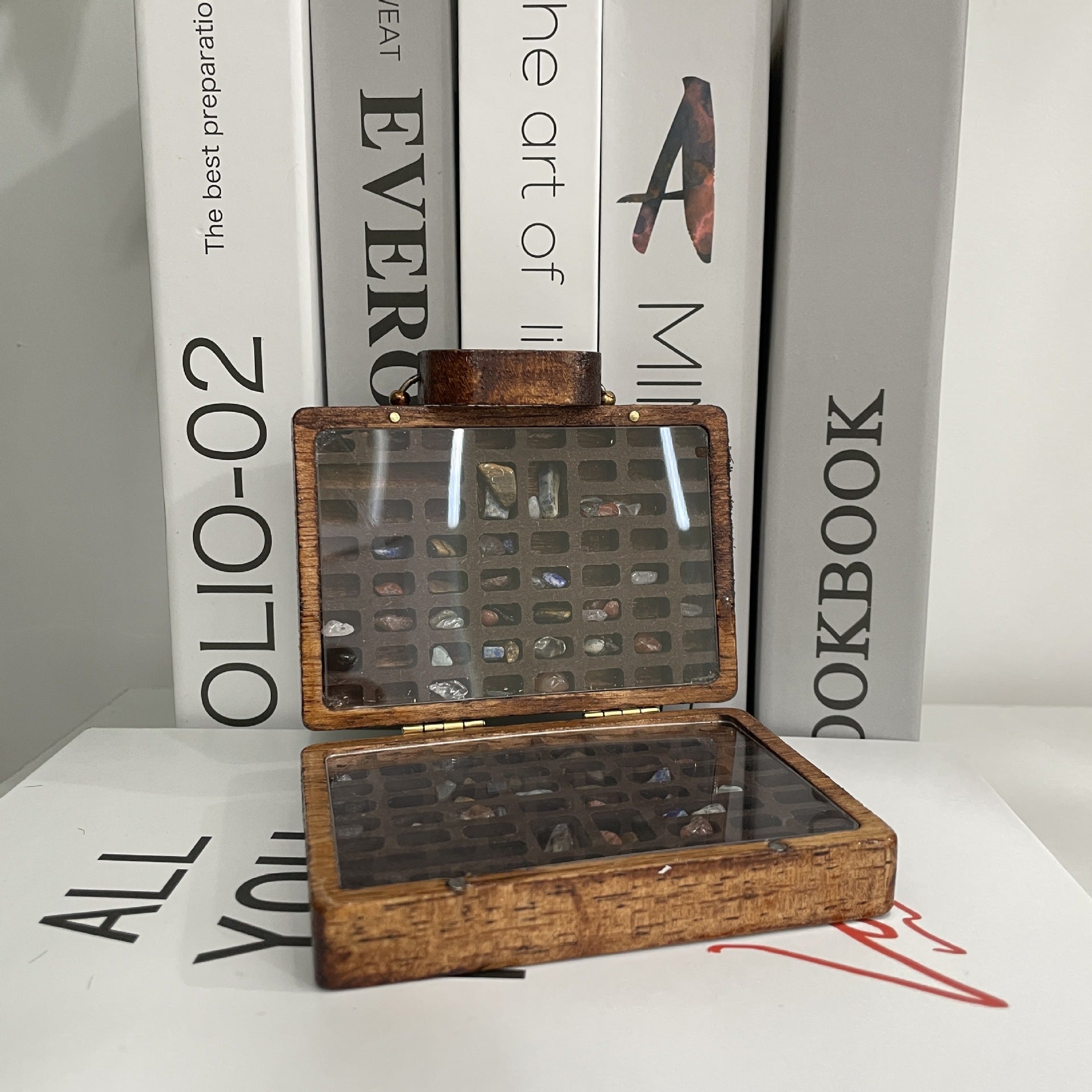 Brown Vintage Wooden Display Box – Glass Lid Organizer for Rocks, Jewelry, and Collectibles