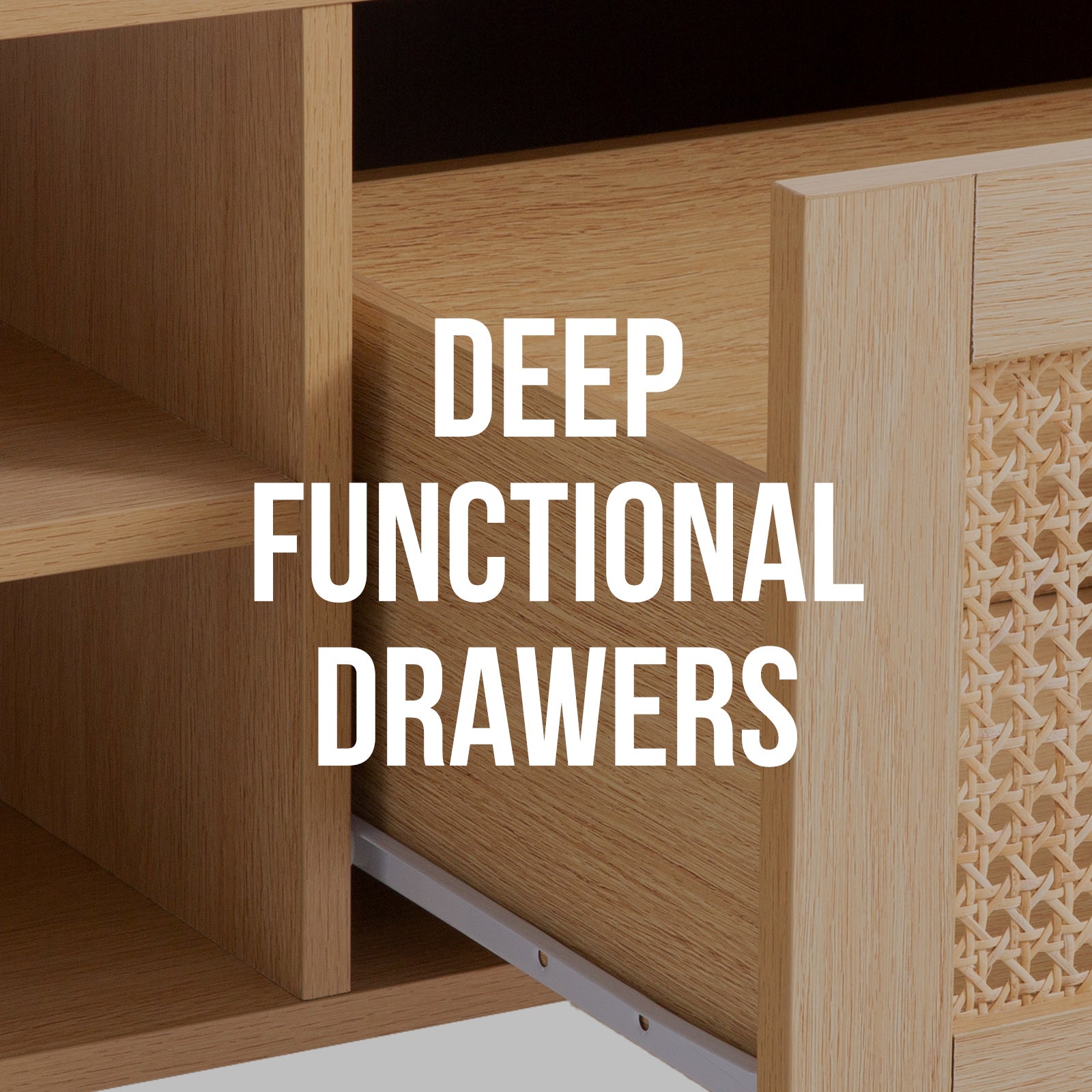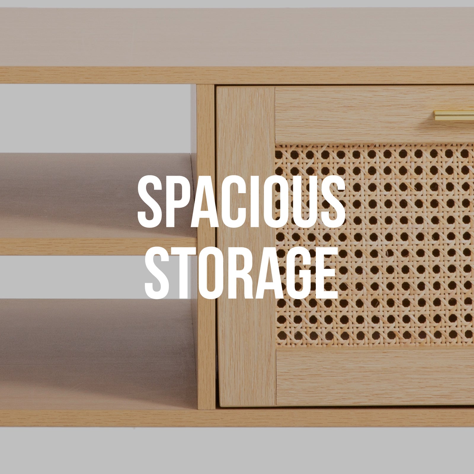 The two open shelves are perfect for storage of coffee table books, personal decor items and the remote control, while the large drawer with rattan feature panel gives you plenty of space to keep your living room organized.