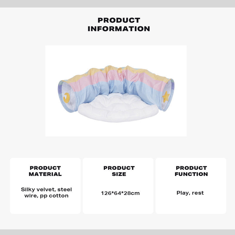 Creative Design: Our cat bed rainrow tunnel is combination pet bed and cat tunnel, built-in star toy, this bed gives your cat a cozy space to play, relax and rest, keeping your cat entertained for long hours.