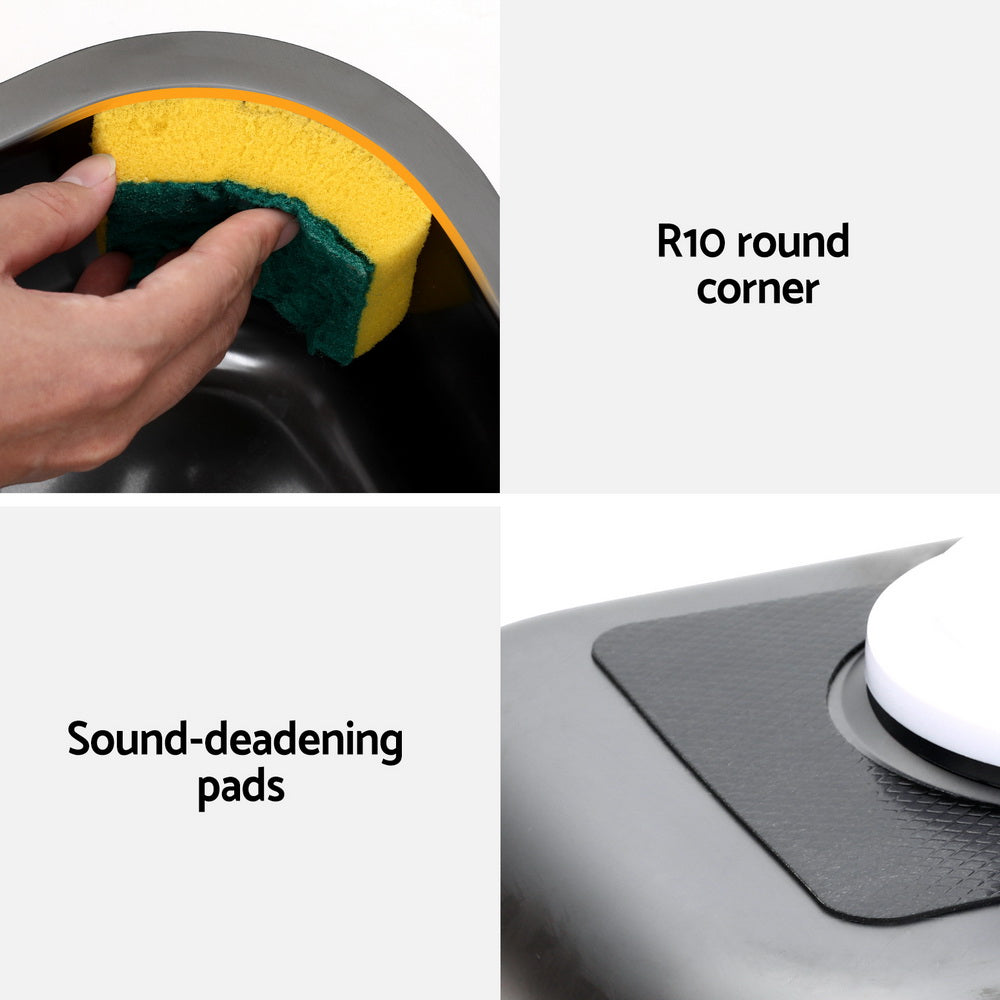 With practical features such as anti-condensation paint, this sink is mould and moisture resistant for added longevity. The R10 rounded corners provide a modern aesthetic while making cleaning effortless. Additionally, sound-deadening pads help minimise noise, creating a quieter kitchen experience. Suitable for under-mount, flush-mount, and drop-in installation, this sink provides versatile mounting options to fit any kitchen layout.