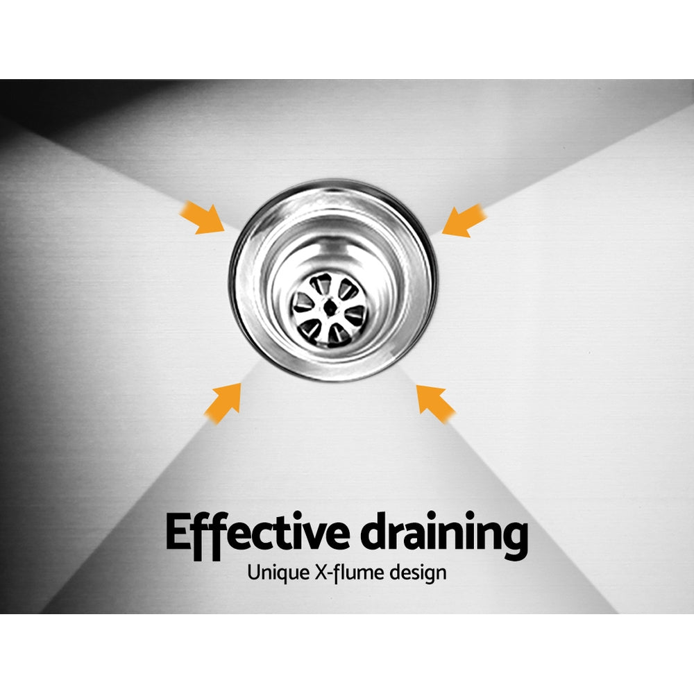 The Cefito Handmade Stainless Steel Sink is built to exacting standards so that you get the very best of quality materials and craftsmanship. It is crafted from heavy-duty food grade 304 stainless steel, unlike others that are made from inferior 201 grade or 304 imitations. Built to be scratch-proof, oil-proof and more importantly, bacteria-free, the silky-smooth satin-coated stainless-steel sink also features an X-flume design for easy drainage, deep and wide bowl for practicality, R10 rounded corners for safety and easy cleaning, eco-friendly anti-condensation paint, and five sound-deadening pads. Suitable for drop-in or flush-mount installation, our sink should have a definitive place in your uncompromising kitchen.