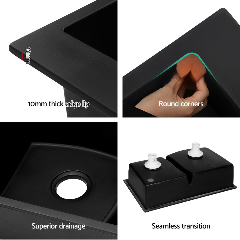 Cefito Kitchen Sink 76X47CM Granite Stone Basin Double Bowl Laundry Black