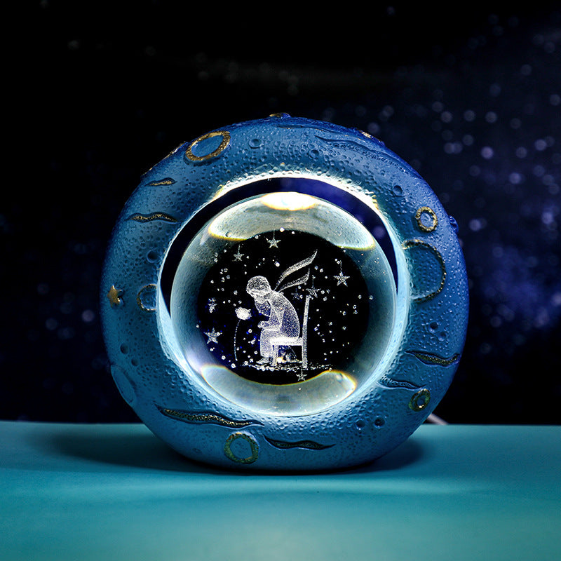 Celestial Ring LED Crystal Ball Lamp - 3D Engraving, Unique Gift (Little Prince Rose)