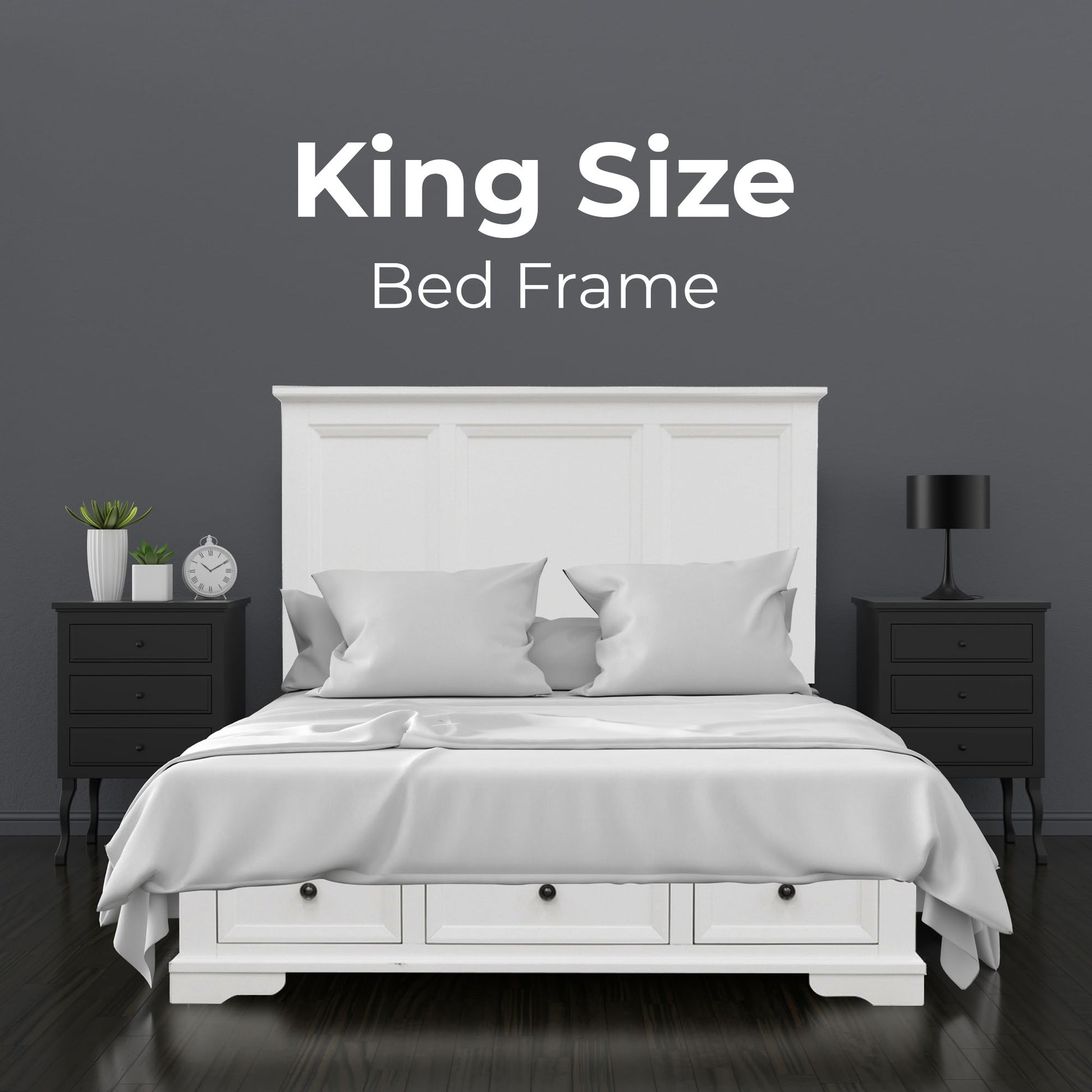 Celosia 5pc King Bed Frame Bedroom Suite Bedside Dresser Mirror Package - White
