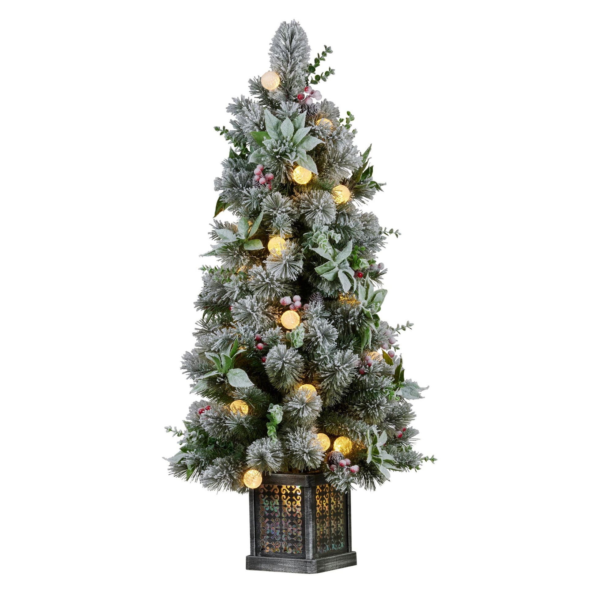 Christabelle Snowy Crown Pine Potted Christmas Tree 1.2m Multicolour Pre-Lit with Snowball Lights