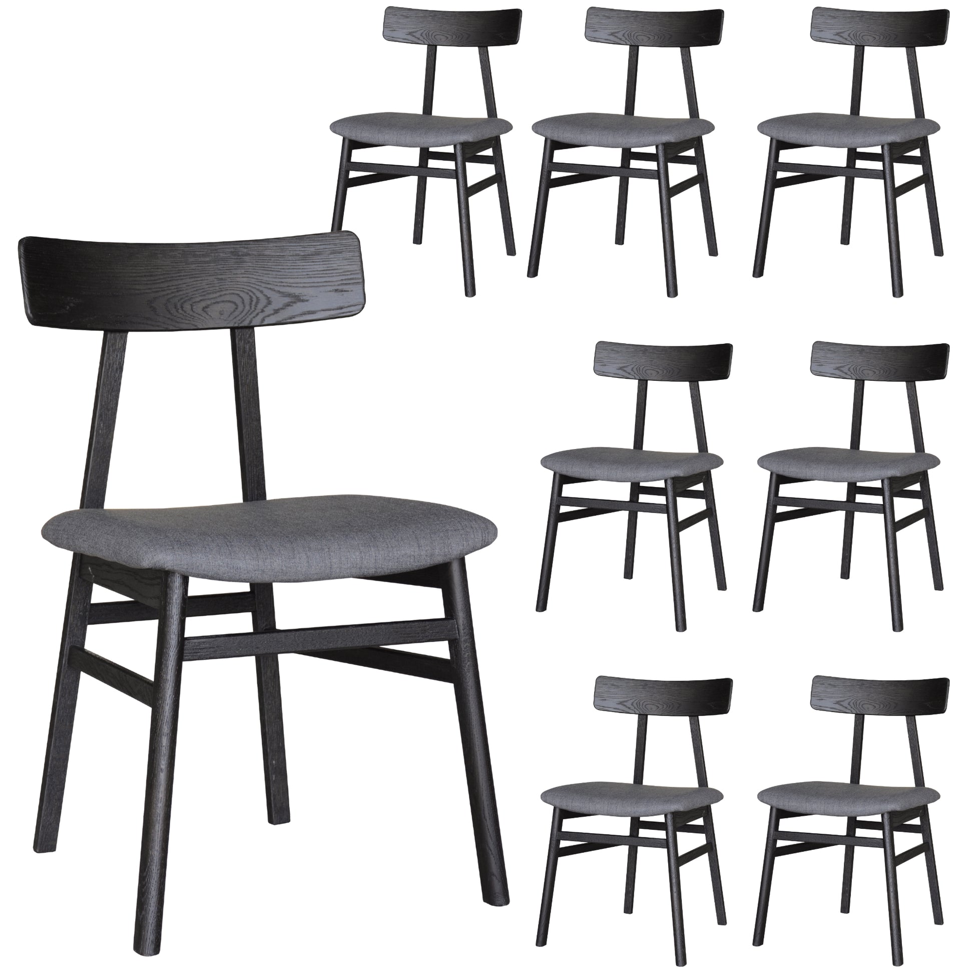 Claire Dining Chair Set of 8 Solid Oak Wood Fabric Seat Furniture - Black