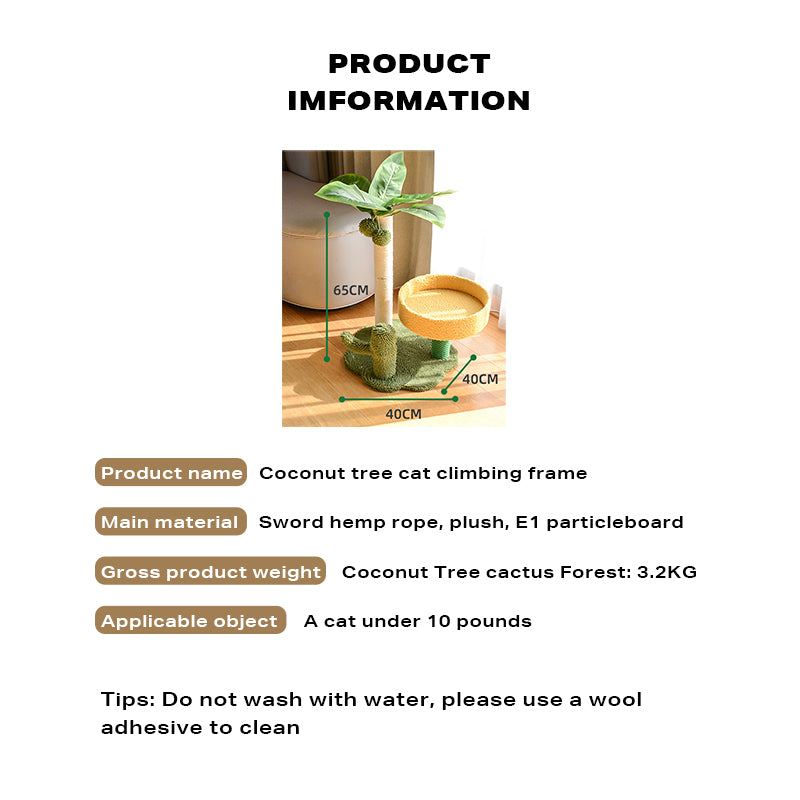 Material: Particleboard,Natural Sisal Rope and Soft Plush