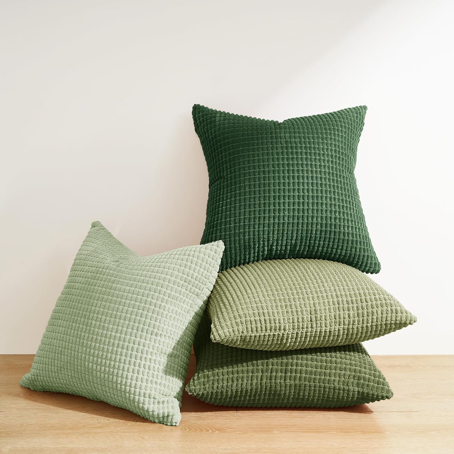 Corduroy Corn Grain Cushion Covers - Soft Velvet with Hidden Zipper - Stylish Mix of Green Shades, 45cm x 45cm (Pack of 4)
