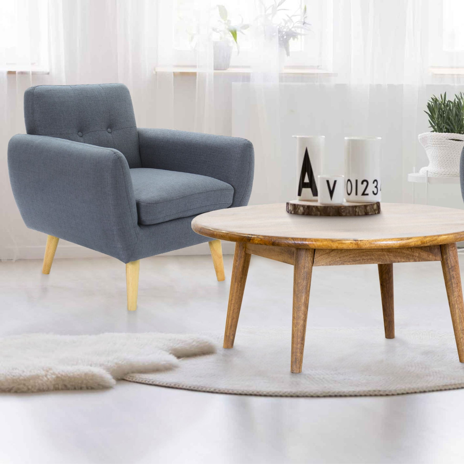 A sofa is the focal point of a living room. Place this beautiful 2-piece set of sofas, designed in the Scandinavian style, in your living room and it will instantly become the most stylish part of your home. The single-seater sofa set is an epitome of superb craftsmanship. They showcase comfy looks, featuring tapered legs and outwardly sloping arms. They have a fixed backrest with button details and loose-style seat cushions with high-density foam for superior comfort. The armchairs in dark grey mix easily with any interior decor style. The entire sofa is upholstered in 100% polyester fabric, which is soft and durable. The stunning sofas also feature high-density foam, webbing, pocket springs, and S-springs that ensure complete relaxation for the body. The structural frame of the sofa is made of sustainably harvested solid wood and plywood, which gives it internal strength and resilience. The frame has a five-year warranty; the foam and springs have a three-year warranty; the fabric and stitching have a one-year warranty; and all other parts have a one-year warranty.