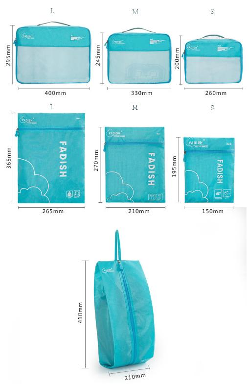 - 1 x 7-Piece Travel Organizer Set (3 Mesh Cubes, 3 Pouches, 1 Shoe Bag)
