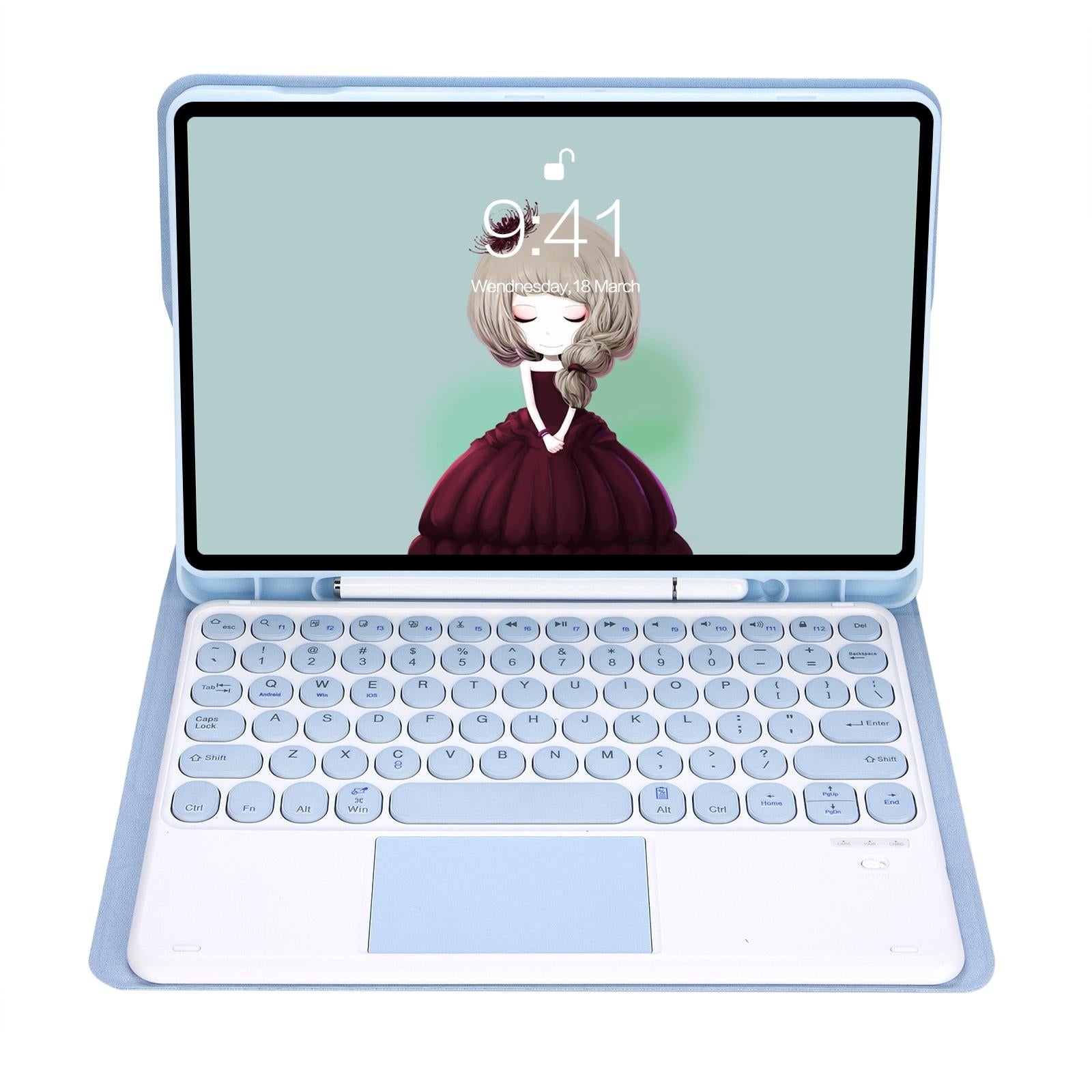 • 1 x Yt102B-A Detachable Candy Colour Skin Feel Texture Round Keycap Bluetooth Keyboard Leather Case With Touch Control For Ipad 10.2 2020 2019 / Air 2019 / Pro 10.5 Inch Black