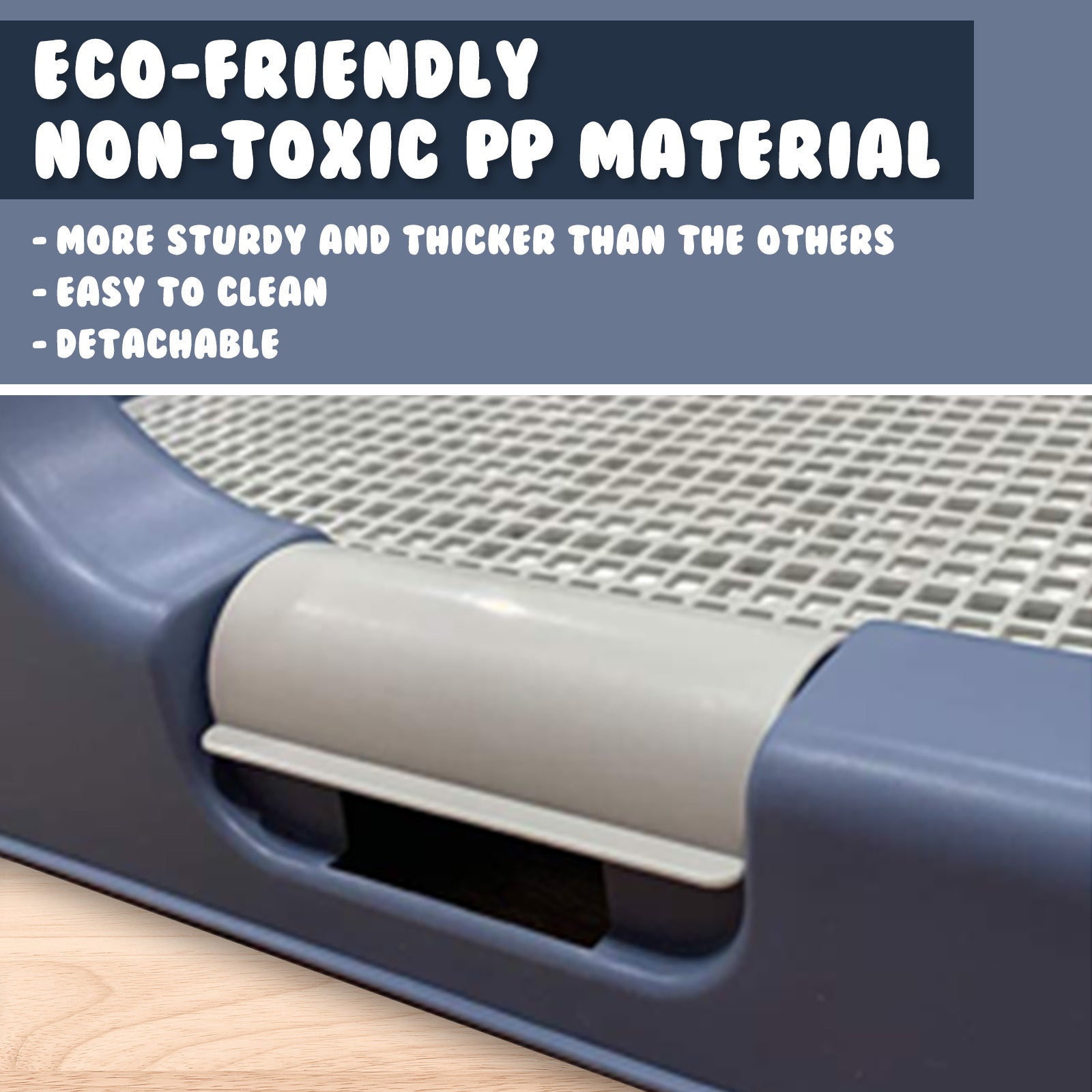 PS KOREA Dog Potty Tray is designed to keep pee where it belongs and to keep your furry companion's potty area sanitary. This plastic tray features a leak-proof design and a detachable high wall. The perforated grate/mesh panel allows urine to carry to the tray underneath and prevents pups from tearing up the potty-training pad inside. They will also love using the potty tray as an indoor toilet. * Training pad/Grass mat is not included in this purchase.