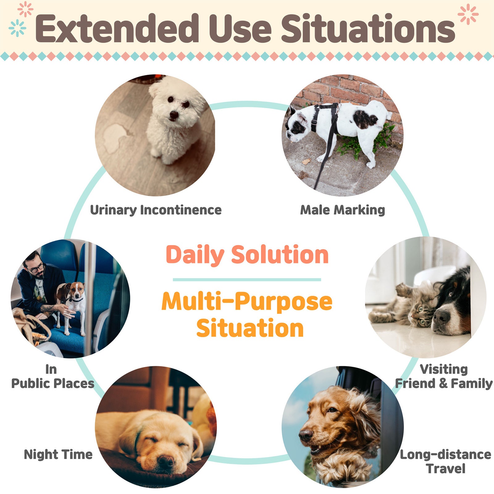 MUST HAVE FOR YOU AND YOUR DOGS : Soft and light fabric provides comfortable movement of dogs and Triple mesh-lined fabric maximizes breathability. In addition, this value set helps your pet parenting easier and it's more convenient by replacing pads quickly and comfortably. Reduce laundry and enjoy daily life with your furry friends.