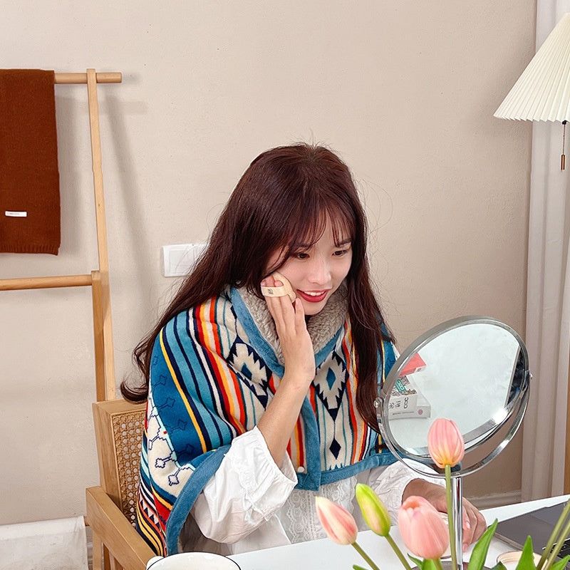 Double-Sided Geometric & Plush Throw Blanket - Warm 70x100cm Multi-Use Wrap