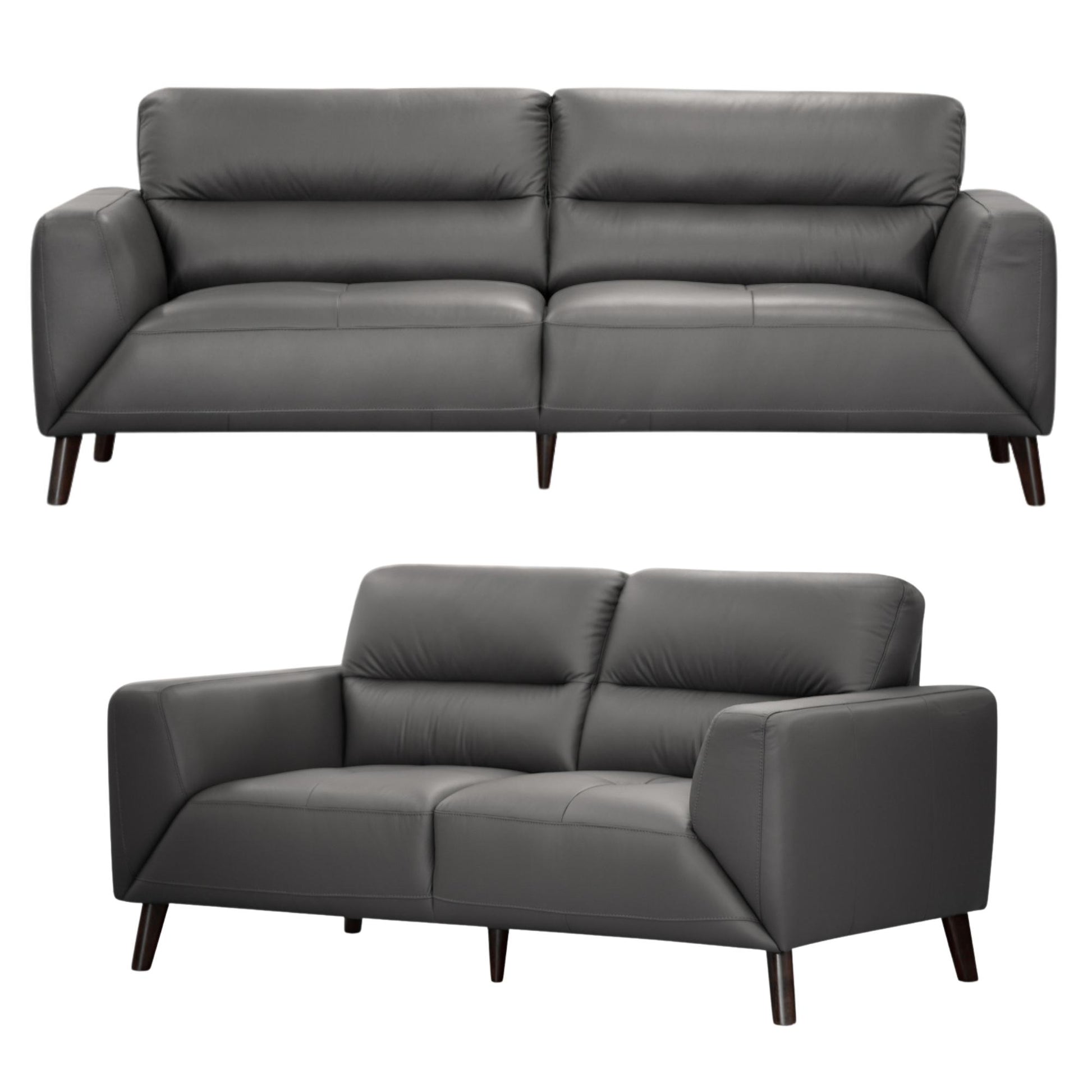 Downy Genuine Leather Sofa Set 3 + 2 Seater Upholstered Lounge Couch - Gunmetal