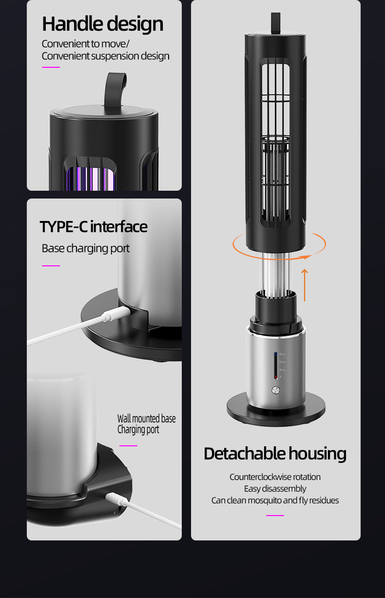 Electric Mosquito Killer Lamp with Detachable Housing and Timer Function - USB Rechargeable