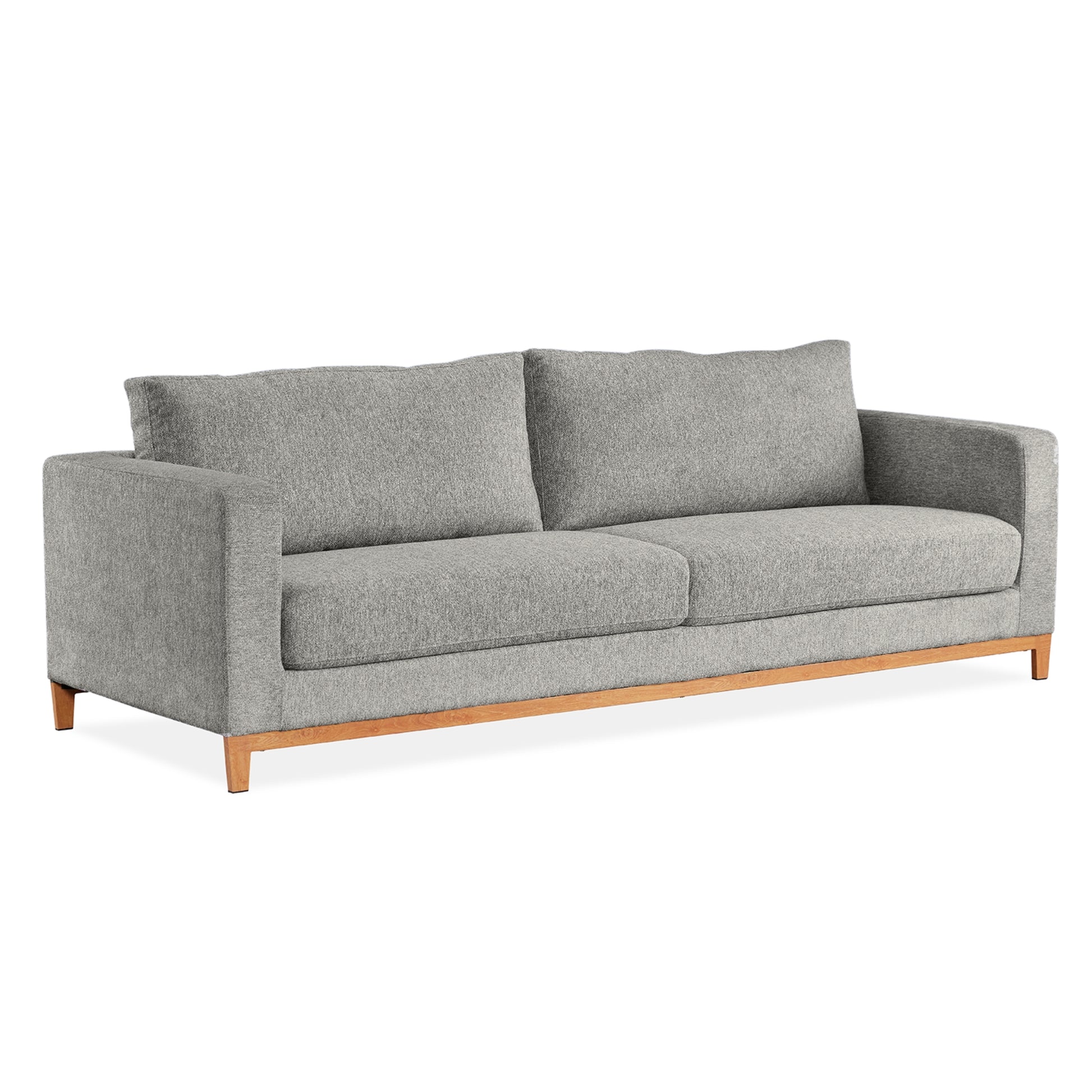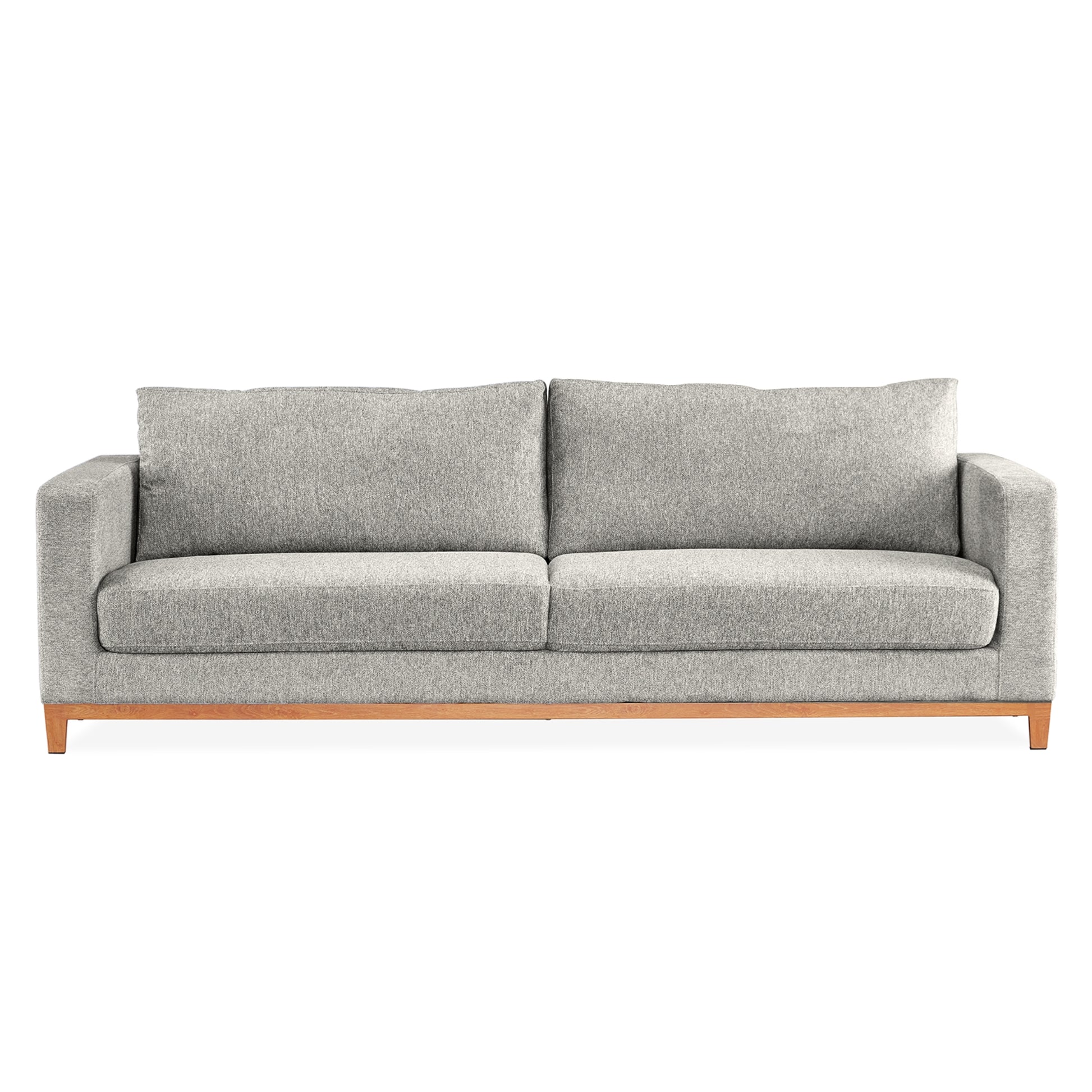 Presenting a sofa with generous seating, crafted in a modern style, that decorates your living area. The adorable 3-seater sofa features square arm design with slimline plinth. The springs, PU foam, polyester fibre, and fabric make the seats comfortable. The seat has high quality foam, 32D high-resolution polyurethane foam. The sofa is upholstered in Garden fabric, which is 100% polyester, in a cloud colour. The colour blends easily with any home interior theme or living space design. The stunning sofa also features strong, tapered-shape legs made of steel in Woodgrain look. Steel Legs mean no more broken and damaged legs. These steel core legs are directly bolted to the steel frame. The structural frame of the furniture is made of Galvanised steel, giving it solid internal strength. This is a fully welded steel frame which is a precision cut frame that makes the sofa light weight and incredibly durable. And it also ensures perfect tailoring because the precision, jig-cut steel frames mean that the upholstery has consistent fit and finish. The frame makes the sofa up to 5x stronger and half the weight of conventional sofa frames. The frame can easily withstand weights up to 300kg. The easy-to-assemble sofa is durable as well. It comes with a one-year warranty.