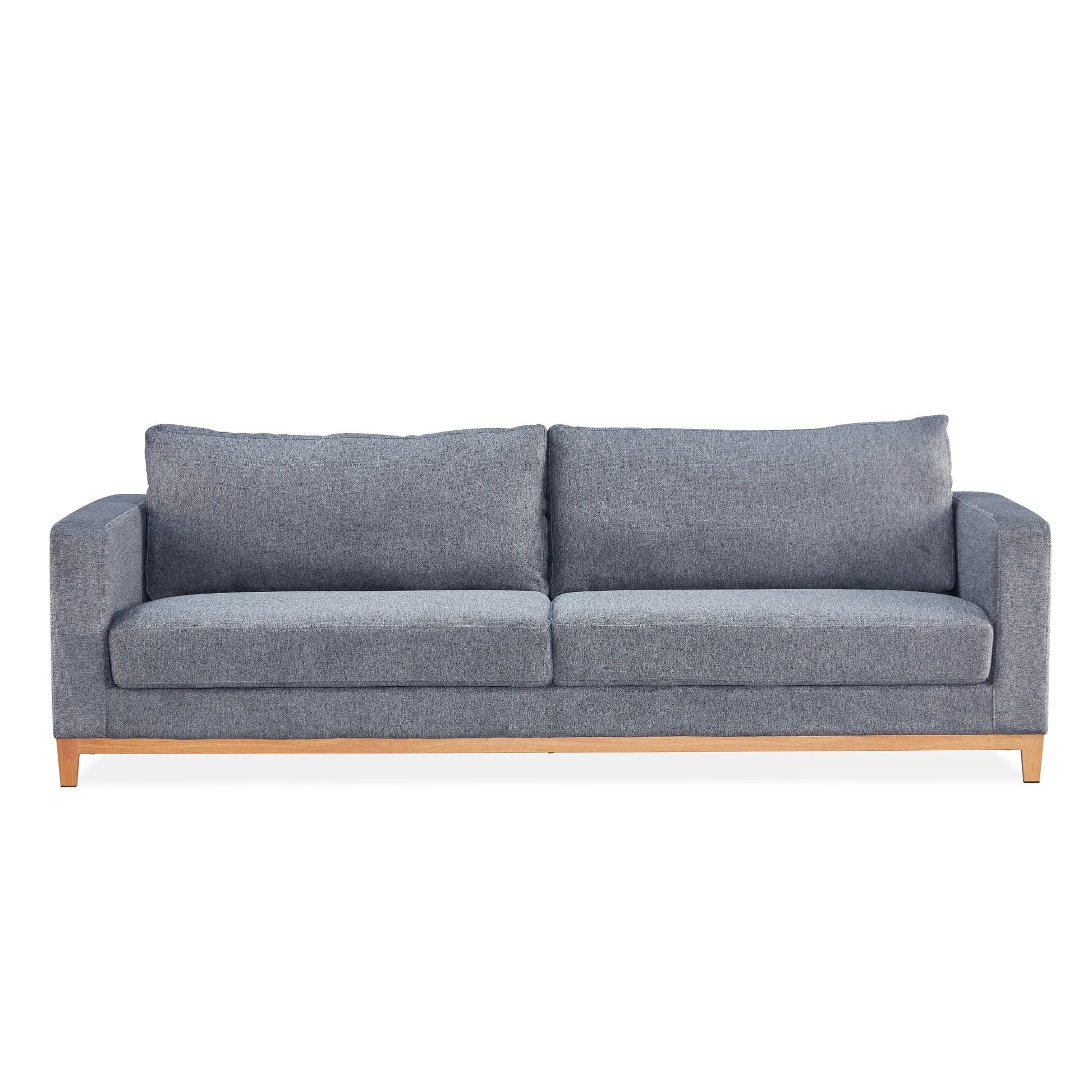 Presenting a sofa with generous seating, crafted in a modern style, that decorates your living area. The adorable 4-seater sofa features square arm design with slimline plinth. The springs, PU foam, polyester fibre, and fabric make the seats comfortable. The seat has high quality foam, 32D high-resolution polyurethane foam. The sofa is upholstered in Garden fabric, which is 100% polyester, in a storm colour. The colour blends easily with any home interior theme or living space design. The stunning sofa also features strong, tapered-shape legs made of steel in Woodgrain look. Steel Legs mean no more broken and damaged legs. These steel core legs are directly bolted to the steel frame. The structural frame of the furniture is made of Galvanised steel, giving it solid internal strength. This is a fully welded steel frame which is a precision cut frame that makes the sofa light weight and incredibly durable. And it also ensures perfect tailoring because the precision, jig-cut steel frames mean that the upholstery has consistent fit and finish. The frame makes the sofa up to 5x stronger and half the weight of conventional sofa frames. The frame can easily withstand weights up to 300kg. The easy-to-assemble sofa is durable as well. It comes with a one-year warranty.