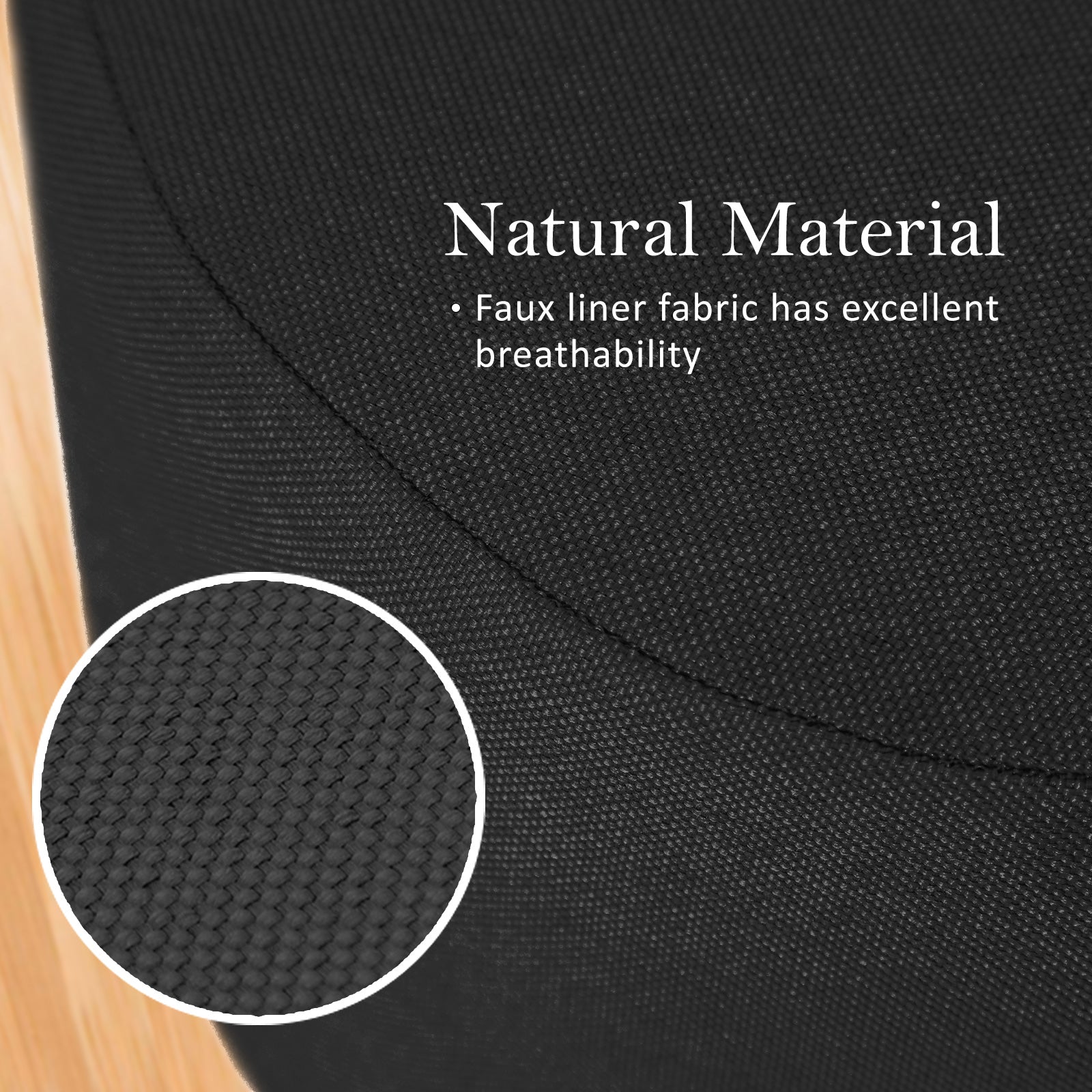 Fabric Ottoman Round Wooden Leg Foot Stool - BLACK