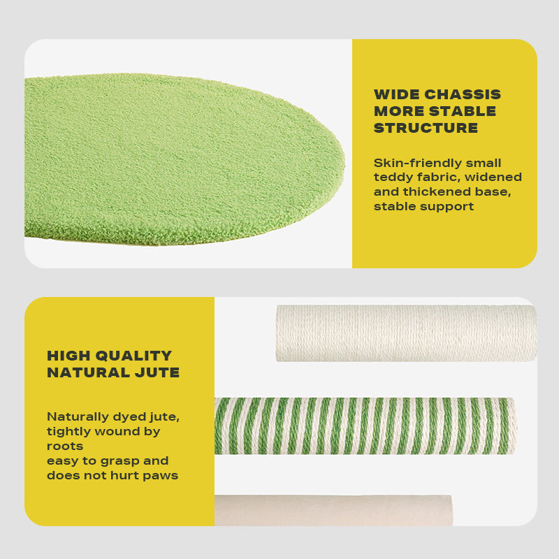 Material: Particleboard,Natural Sisal Rope and Soft PlushMaterial: bunny fur, crystal velvet, canvas, wool felt, wood-based panel, solid wood, jute rope.