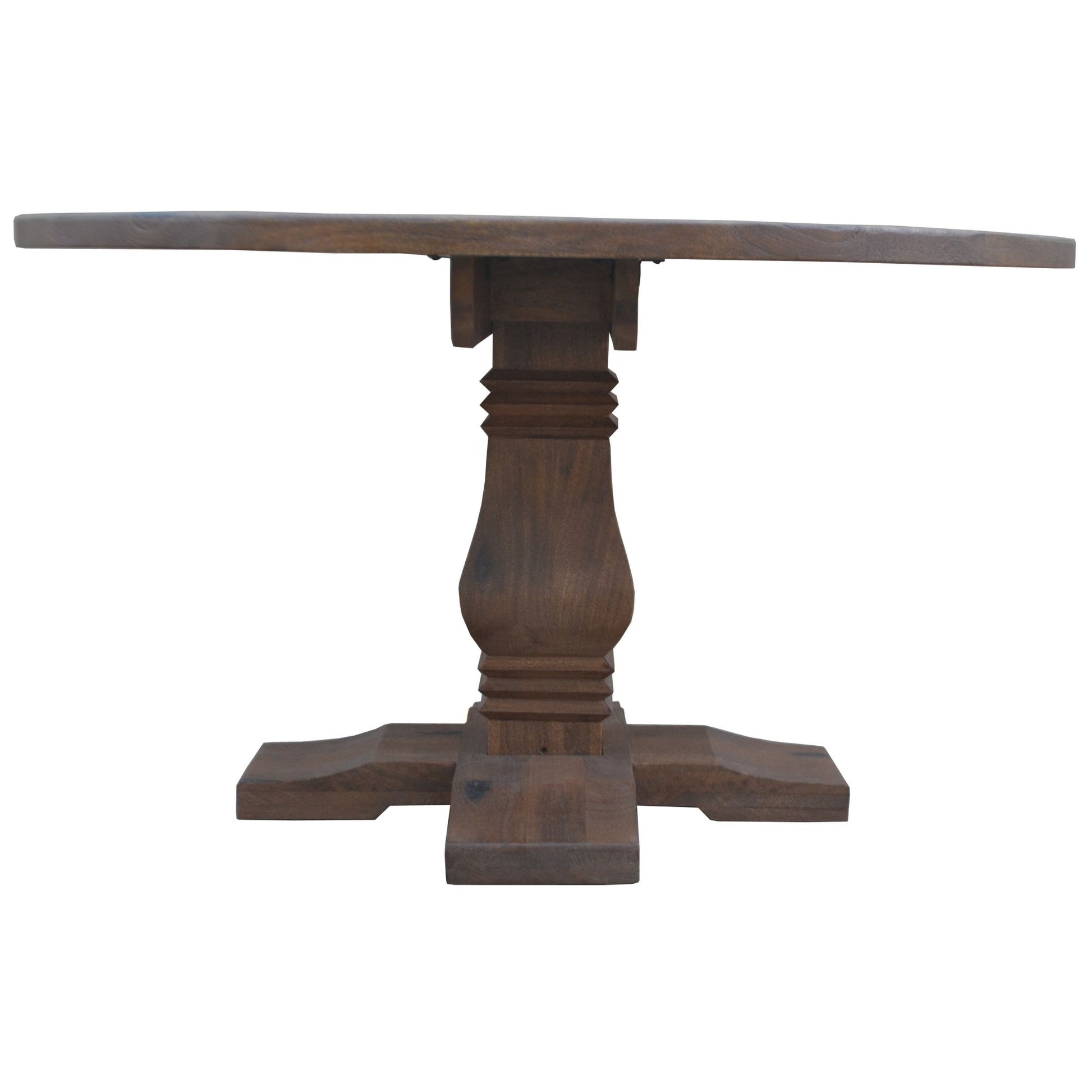 This smart-looking dining set consists of a 4-seater, round dining table and 4-piece dining chairs. The dining set, designed in the French provincial style, is simply a visual feast. It is a splendid work of wood art, crafted by using the traditional construction of wood. The dining table features intricately carved legs for a touch of grandeur. The robust legs blend in with any interior decor style. The lavish 4-seater dining table is made of sustainably harvested mango wood with naturally occurring wood patterns. The wood is known for its beauty, low maintenance, and high durability. The dining table in antique walnut colour looks even greater with a sandblast distressed finish. The table is complemented by equally beautiful dining chairs. The chairs promise both comfort and strength with their button-tufted seats, fabric upholstery, tapered legs, and a strong structural frame of sustainably harvested rubber wood. The chairs in light grey with antique walnut legs enhance the beauty of the dining area magically. The chairs provide comfortable back and lumbar support, and thanks to the homely design of the set, it looks stunning in practically all decor settings. The minimum space needed for the dining set to fit perfectly is W258 x D258 cm. A one-year warranty is included with the easy-to-assemble dining set in which the chairs are fully assembled.